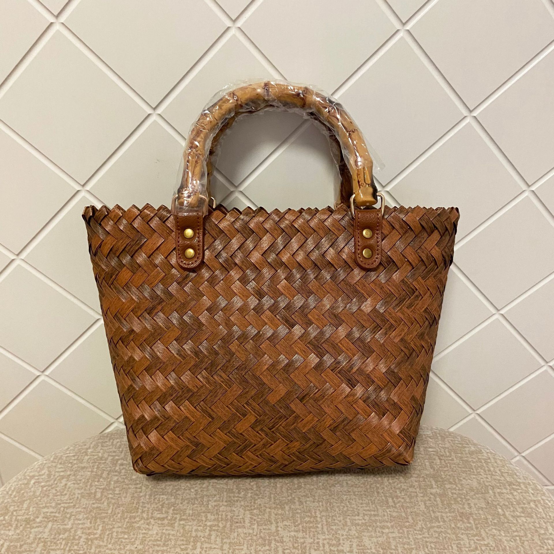 brown bamboo handle bag small size (without ribbon)