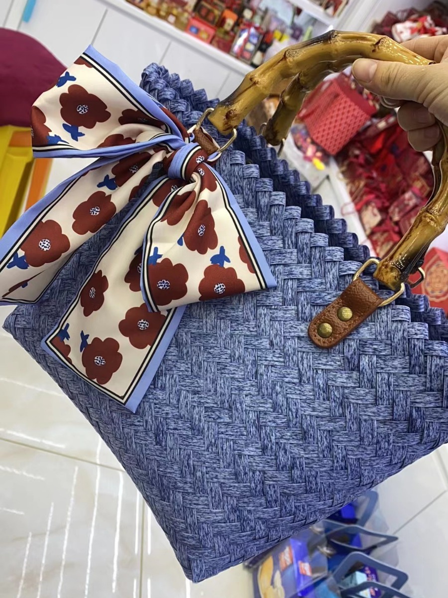blue bamboo handle bag small size (without ribbon)