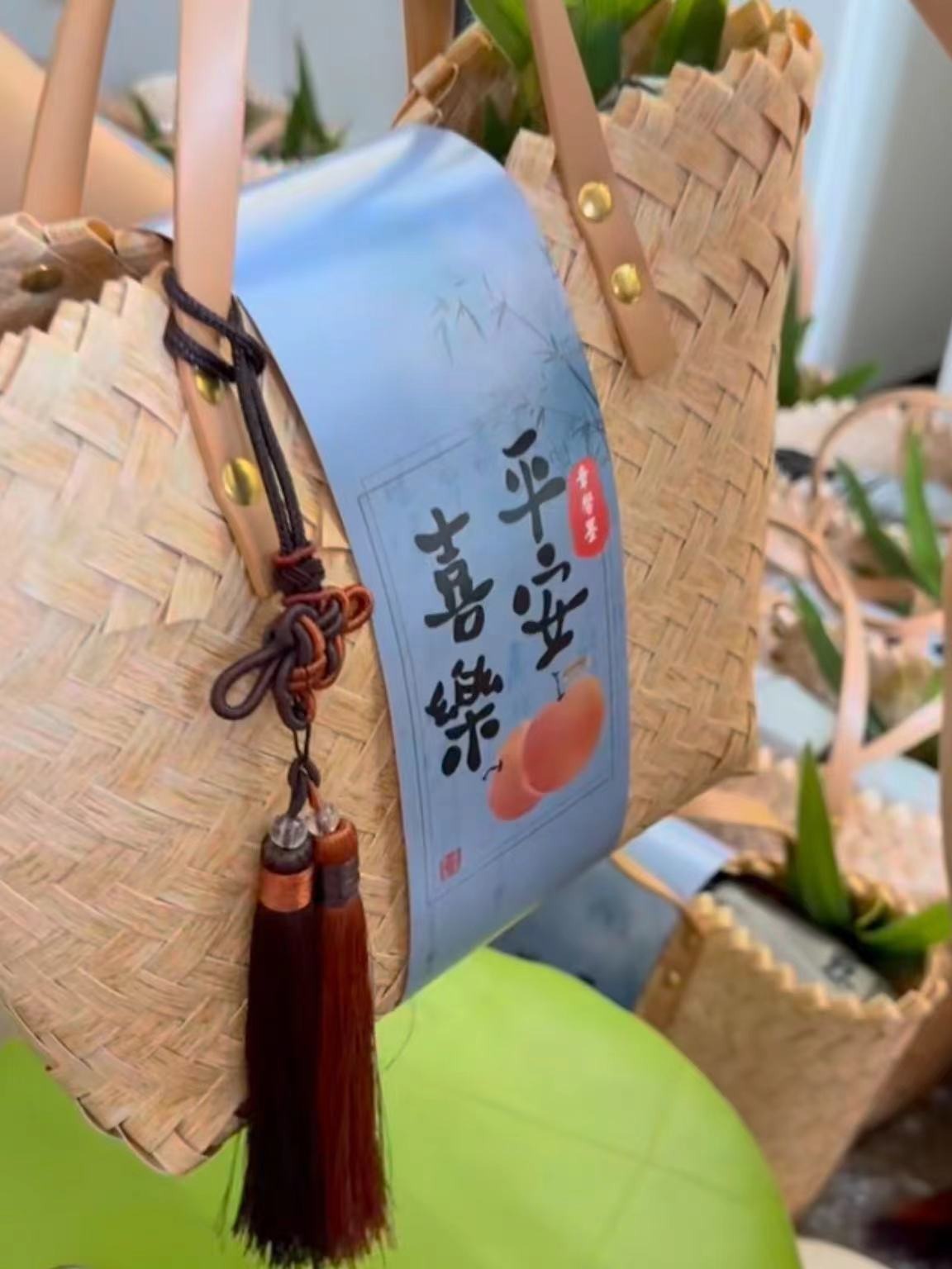 colorful green woven portable small size