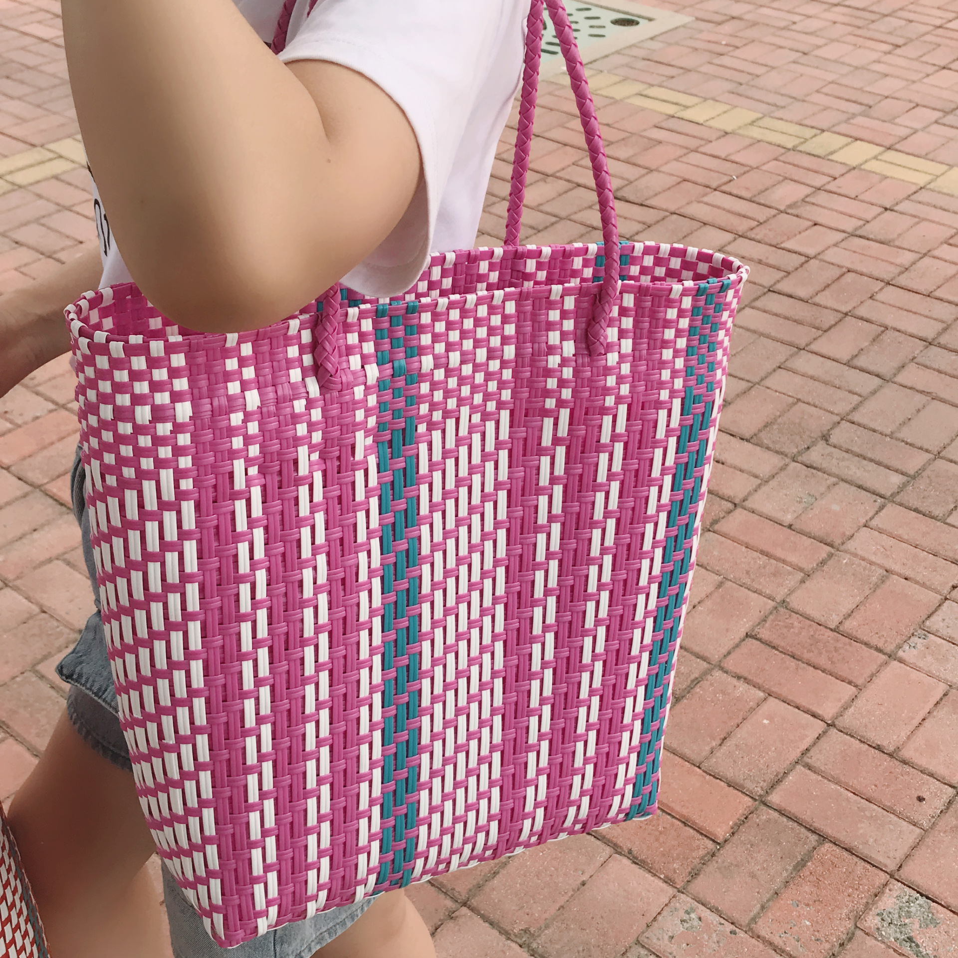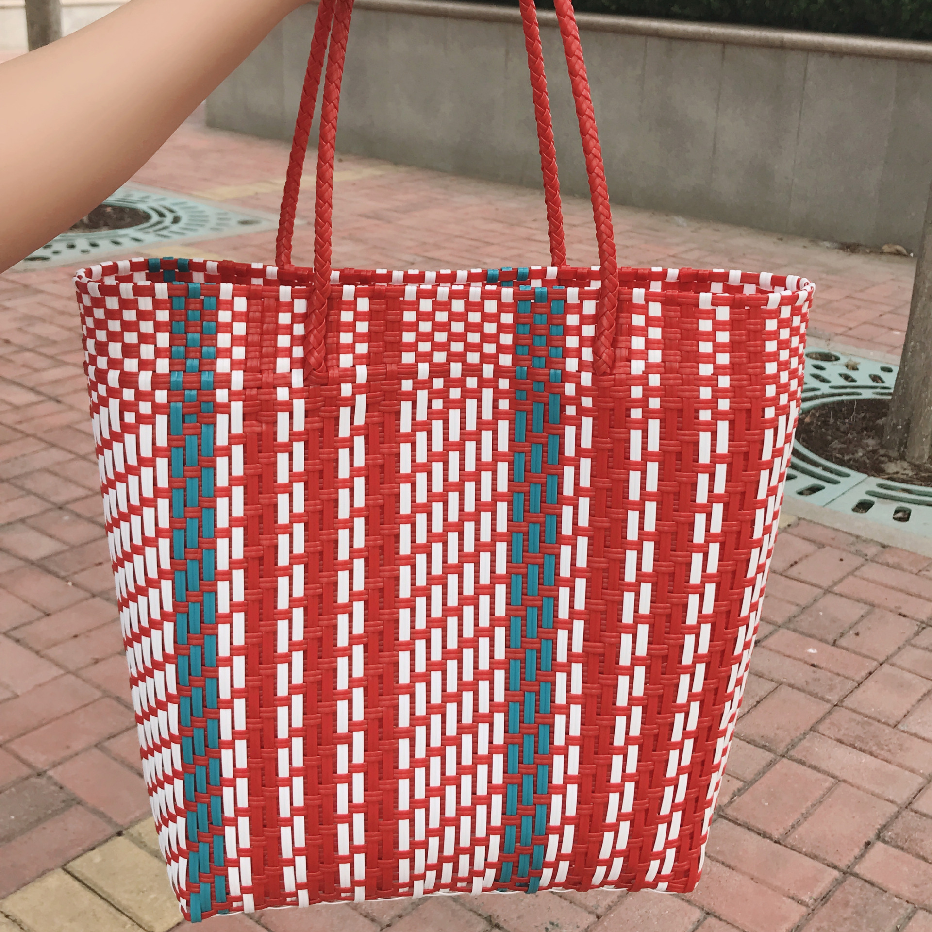 red striped woven bag large