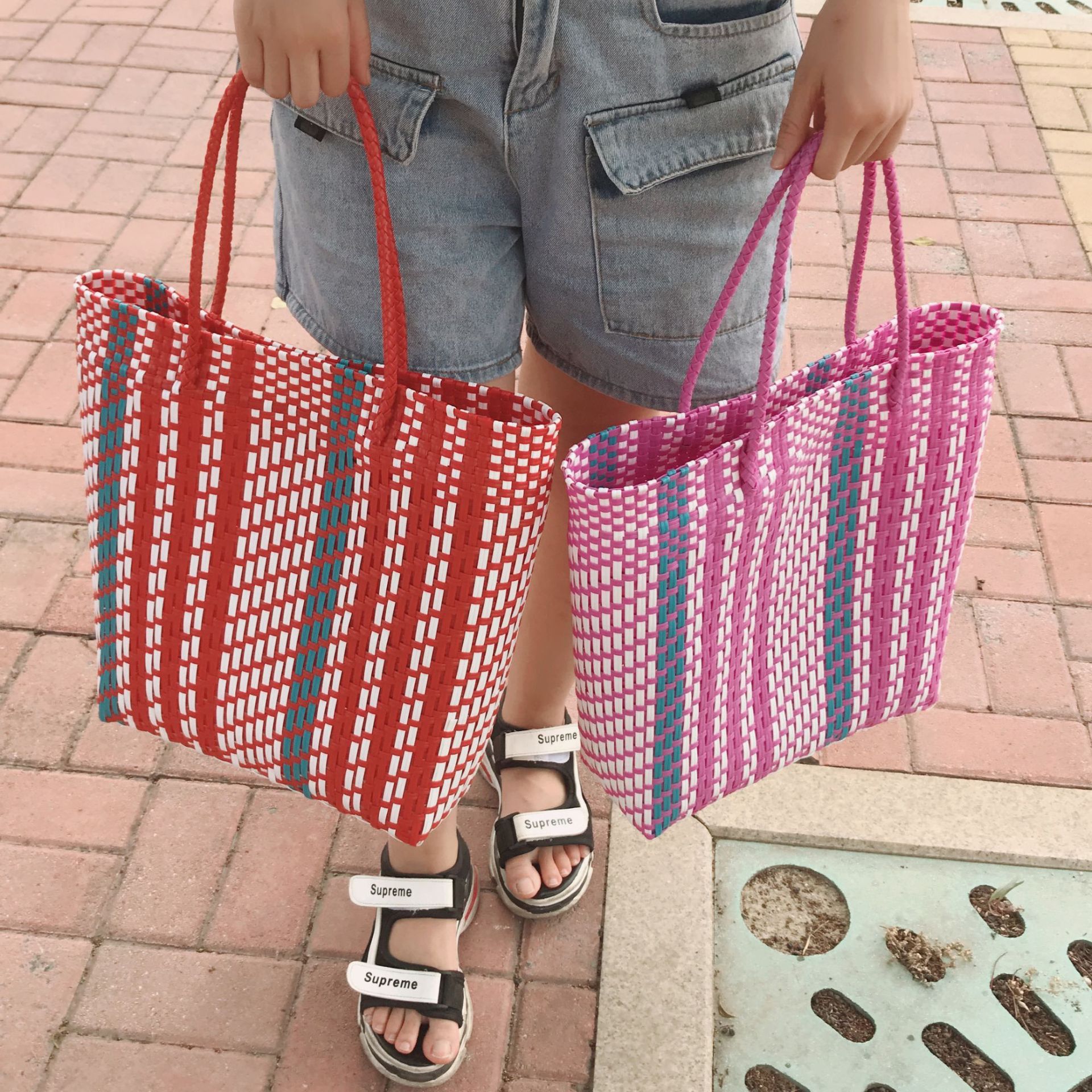 red stripes woven bag small size