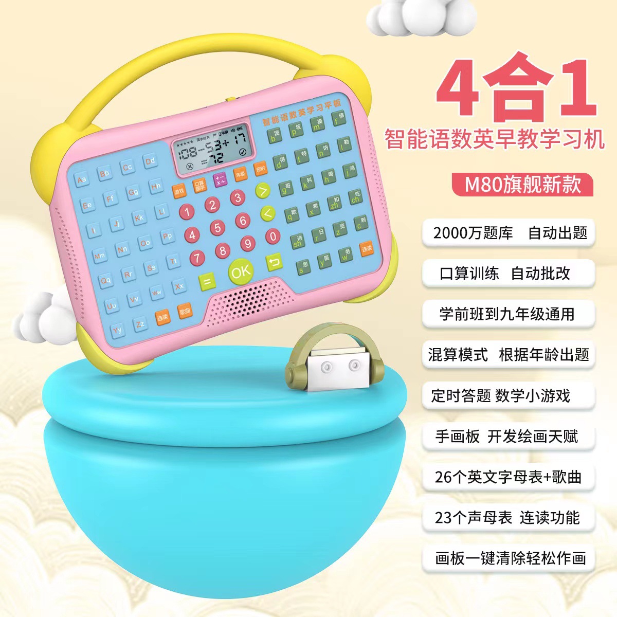 4-in-1 early learning machine oral computing treasure + drawing board + pinyin + phonograph