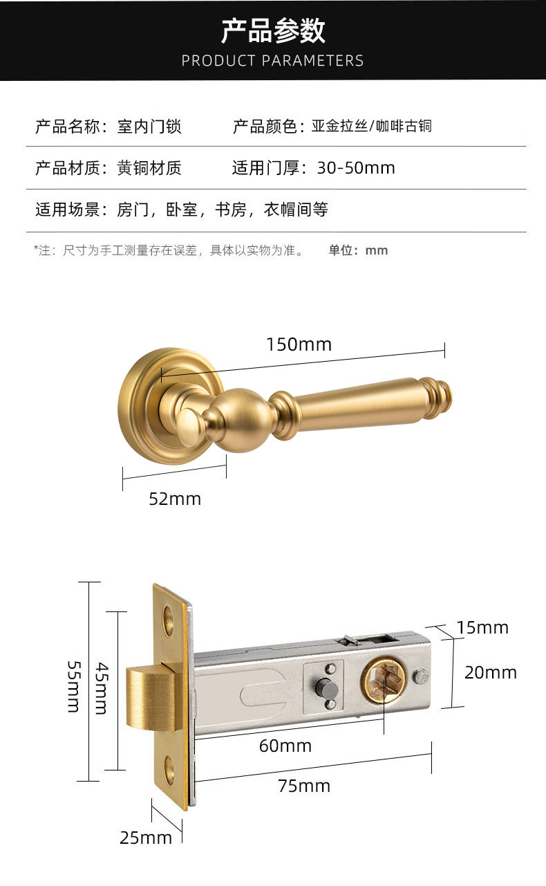 asian gold brushed invisible lock