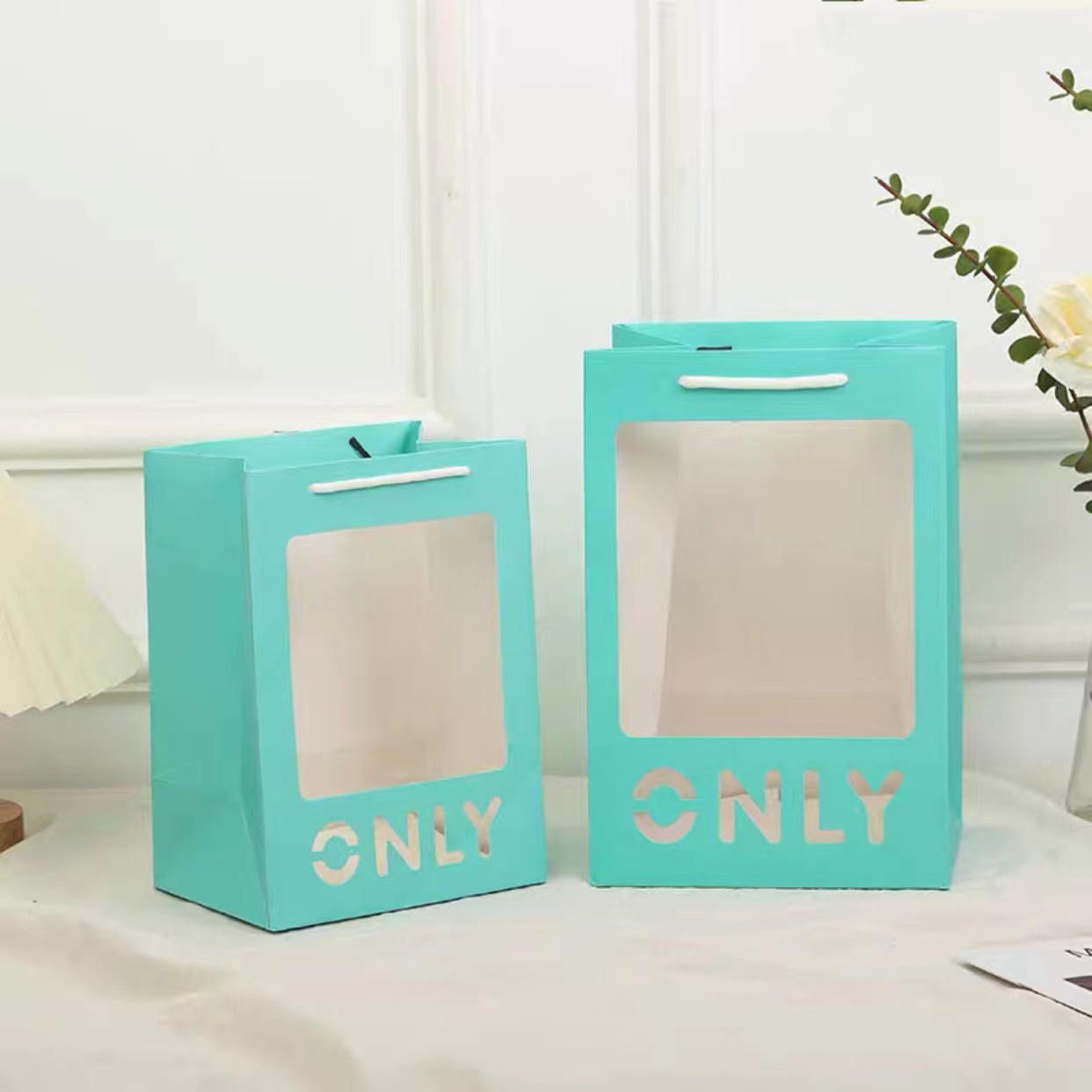 tiffany blue only (handbag window); small size 18*13*25