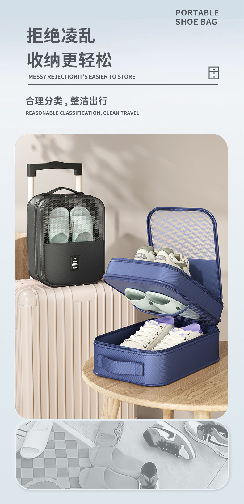 medium size navy blue can only hold one pair of shoes without compartment [can hold less than size 39]]
