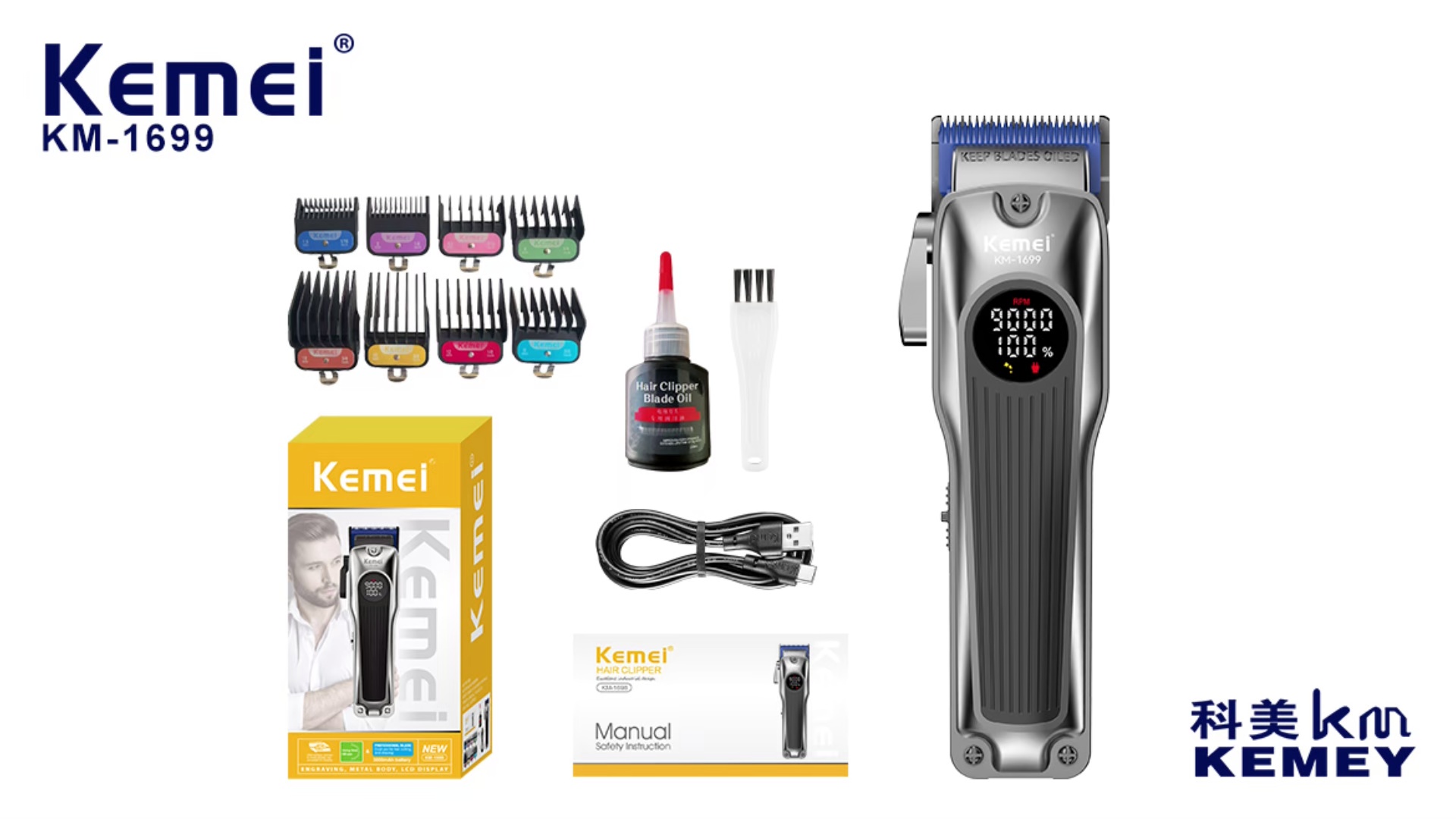 kemei km-1699 usb new professional hair scissors digital display upgrade cutter head adjustable high speed electric clipper