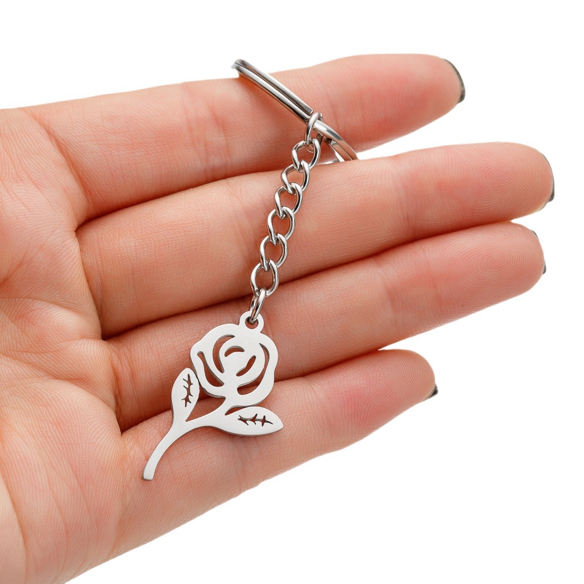 New French Style Stainless Steel Rose Dandelion Flower Pendant Keychain Light Luxury Minority Accessories Wholesale