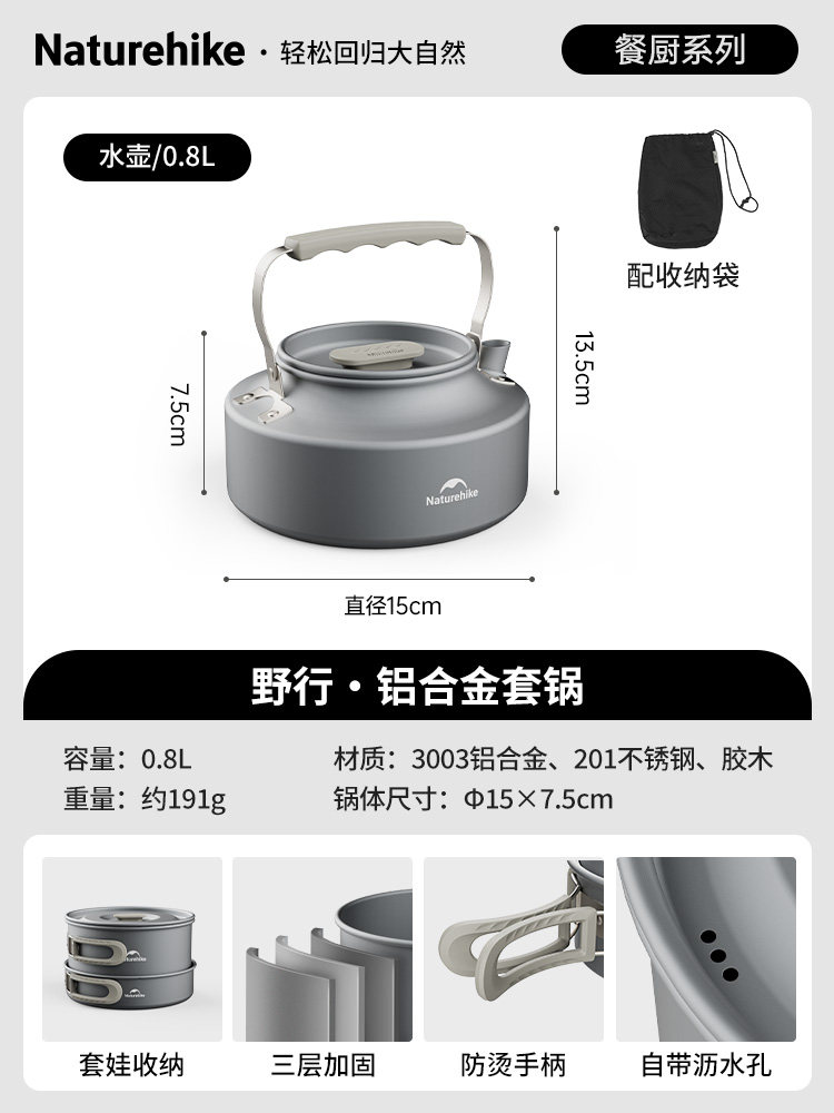 [suit b for 2-4 people] 1.7l pot +7-inch fry pan + 0.8l kettle