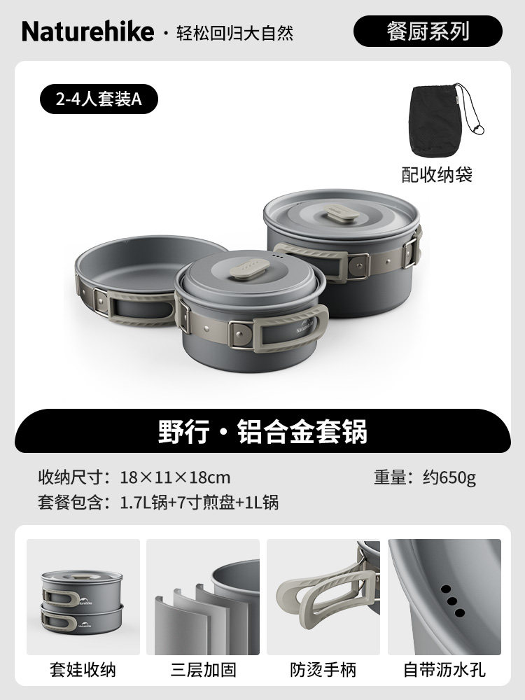 [suit a for 2-4 people] 1.7l pot +7-inch fry pan + 1l pot