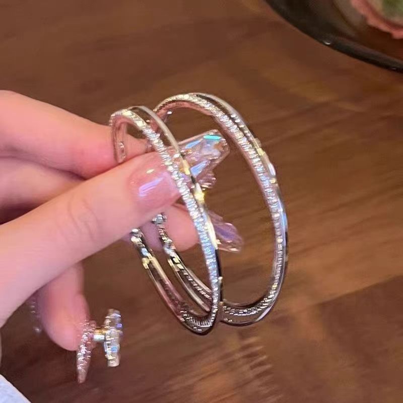 rhinestone double circle ear ring