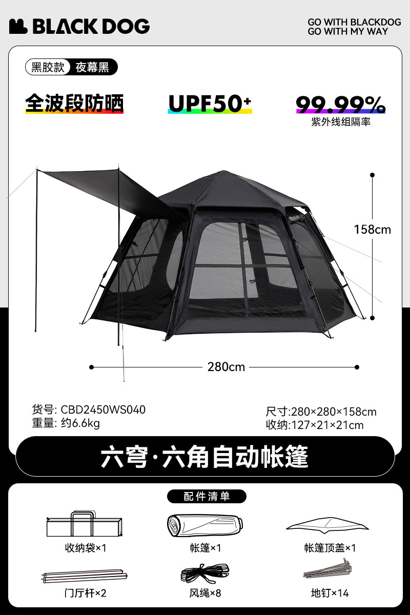 [six-dome] hexagonal family account [sun protection vinyl, installation-free quickly open] suitable for 4-6 people