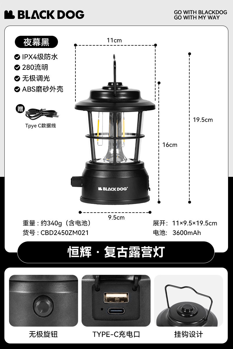 camping ambience light [infinite adjustment/hook design/280ml]]