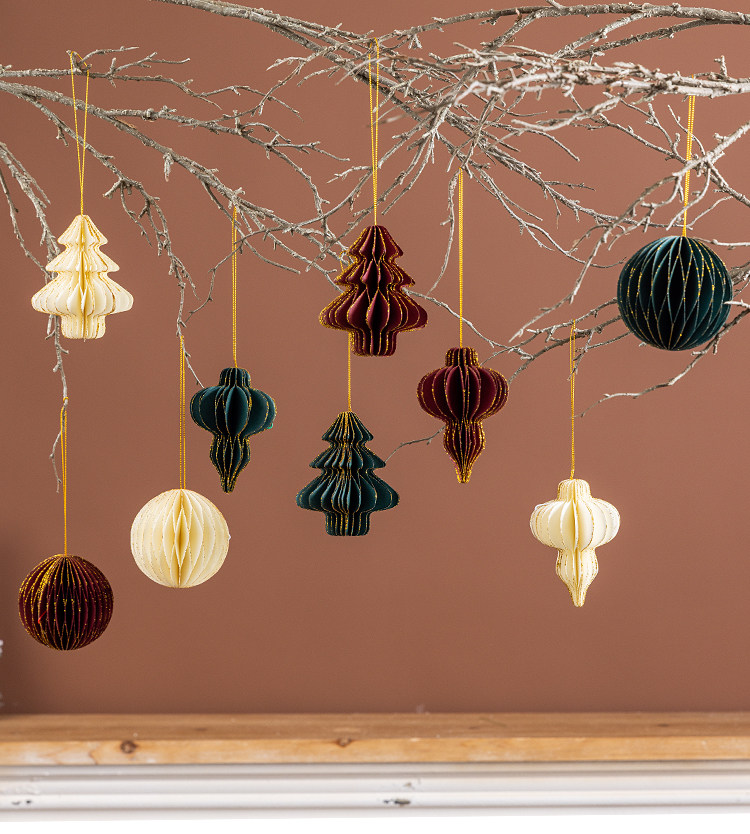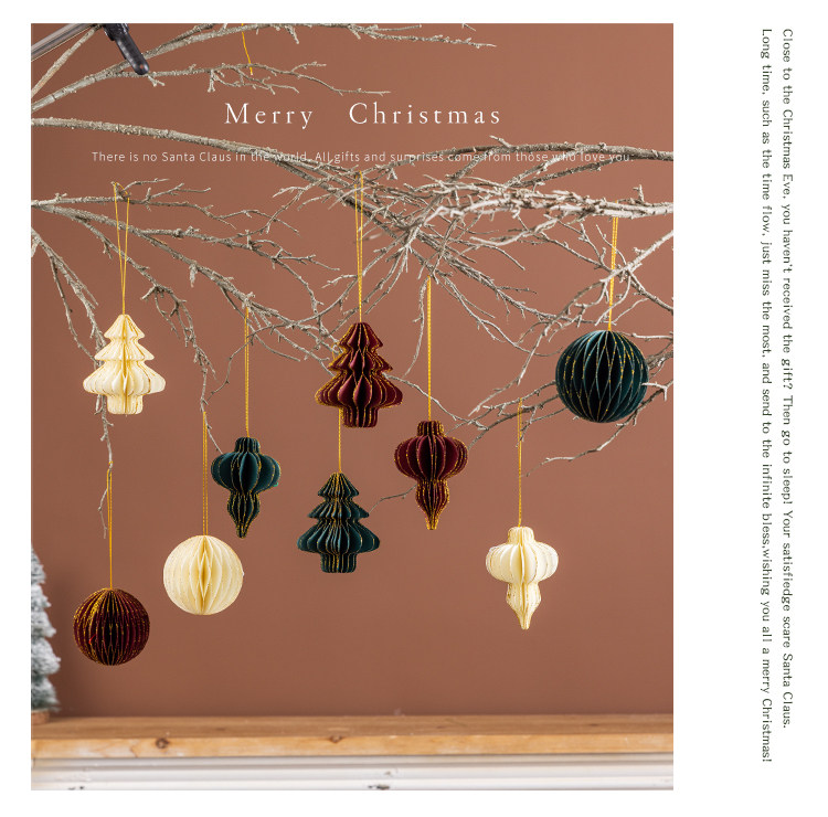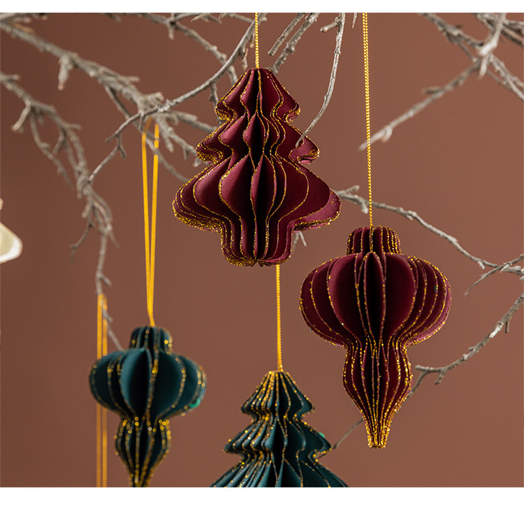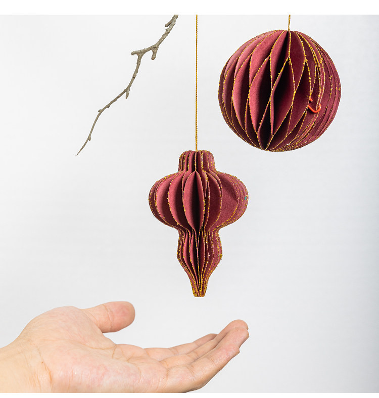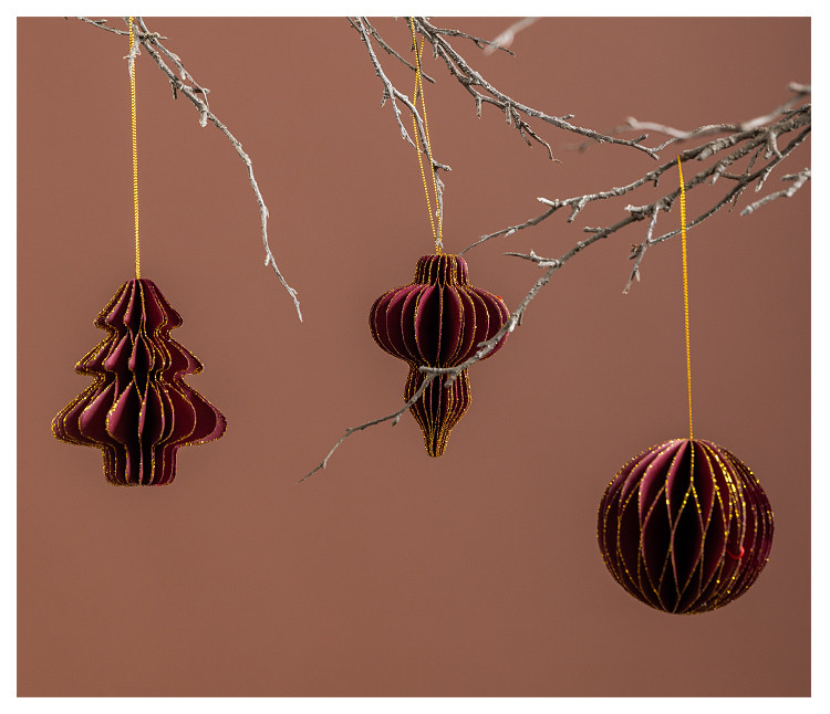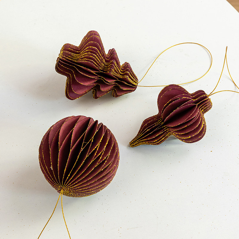wine red honeycomb paper three-piece set