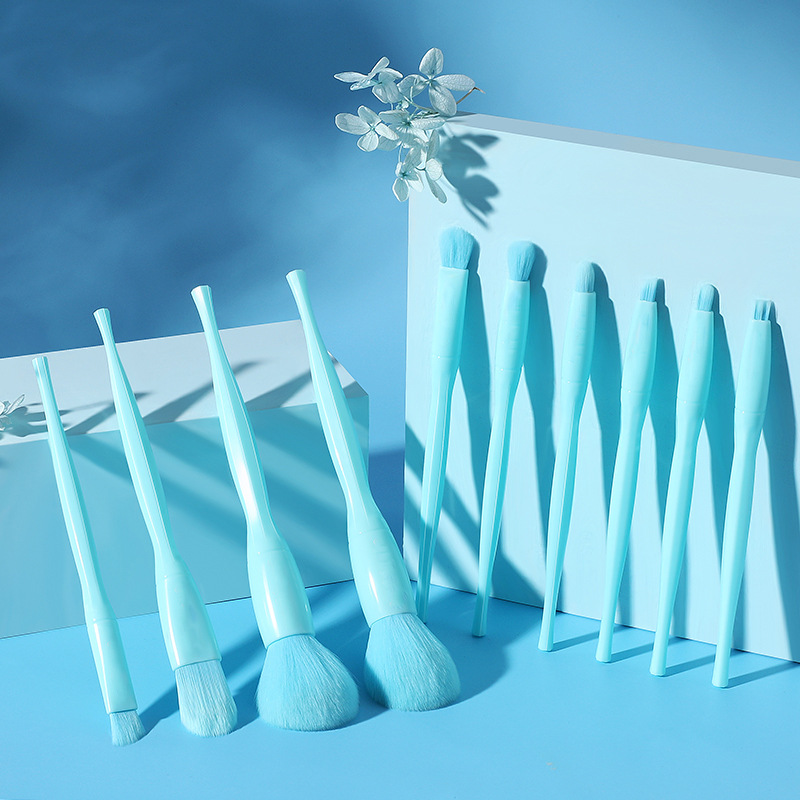 10 blue makeup brushes + brush bag [with logo]]