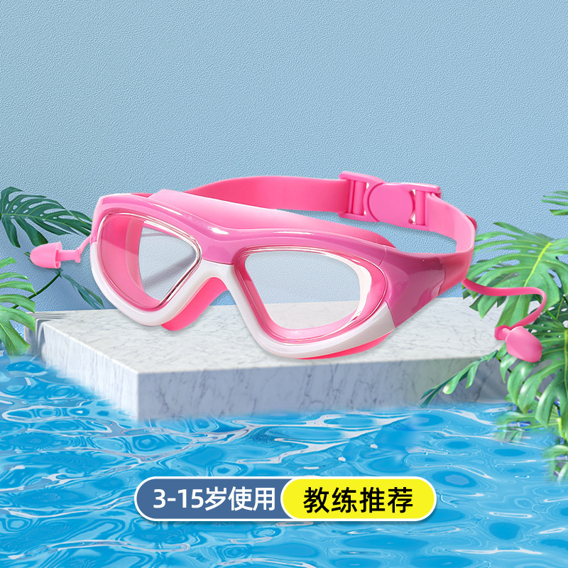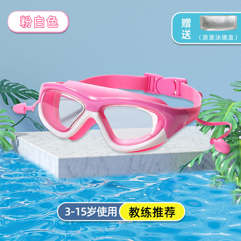 boxed pink white-children's large frame swimming goggles