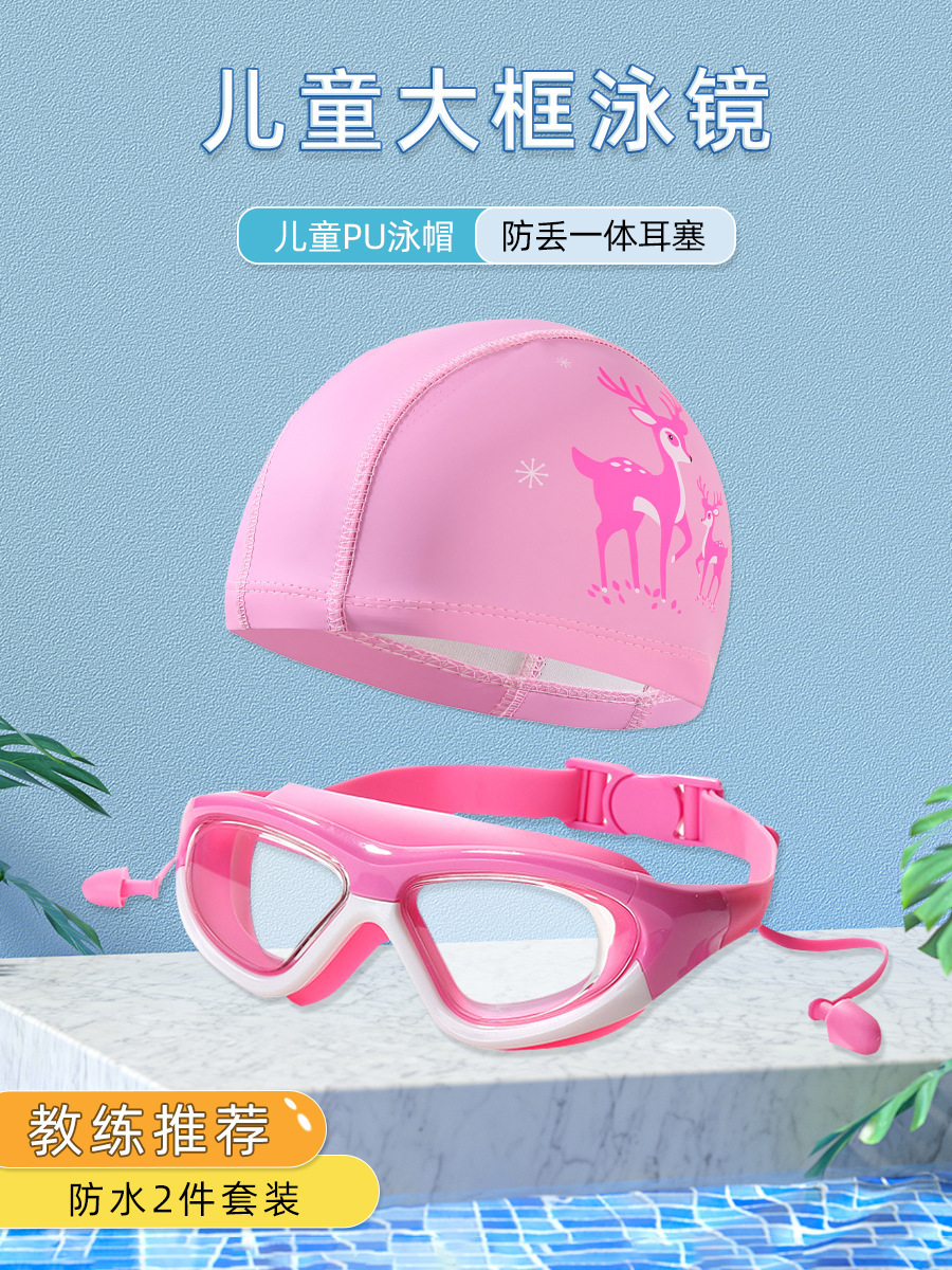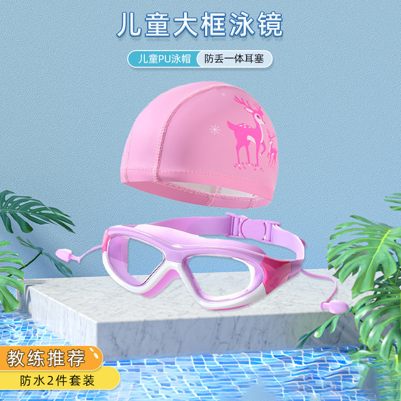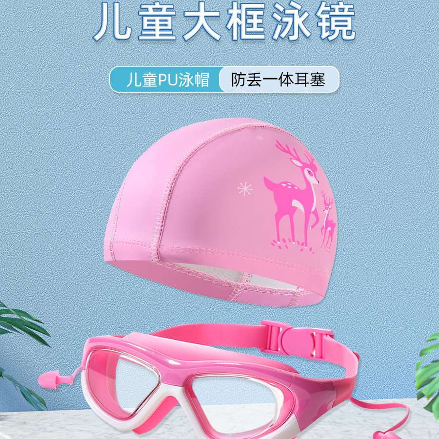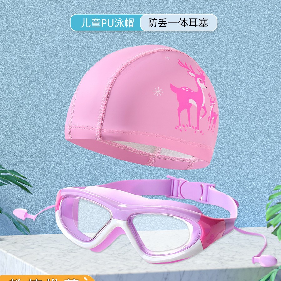 boxed pink and white goggles + swimming cap (2-piece set)