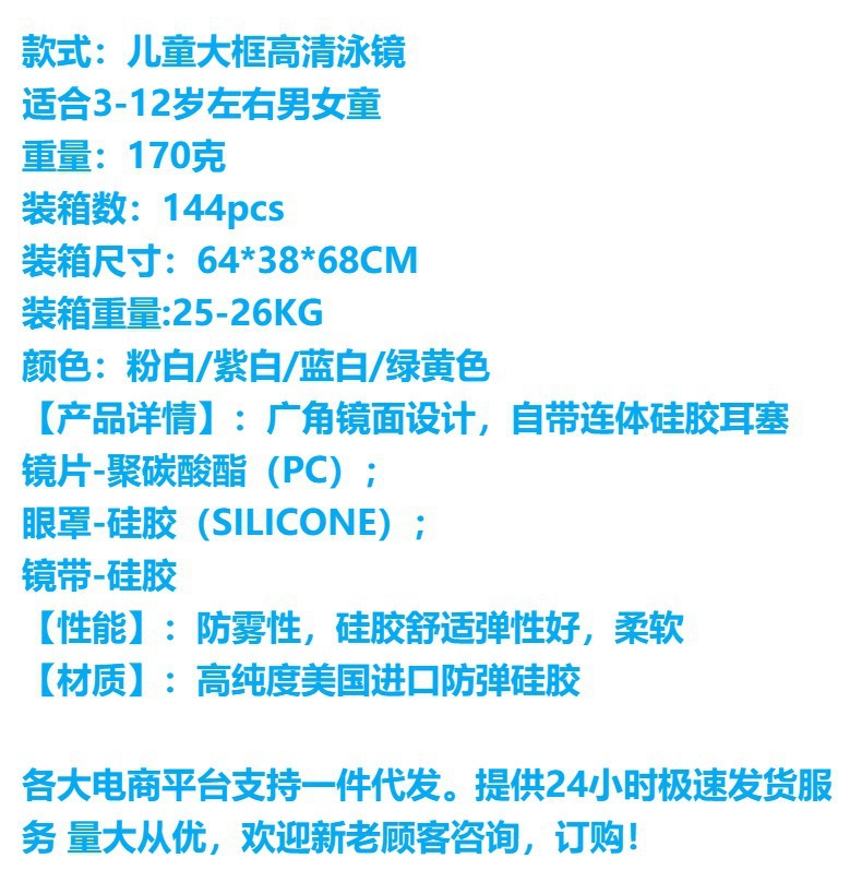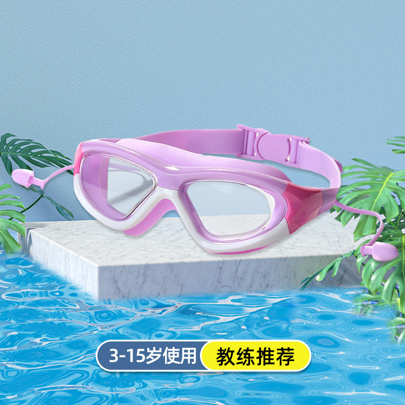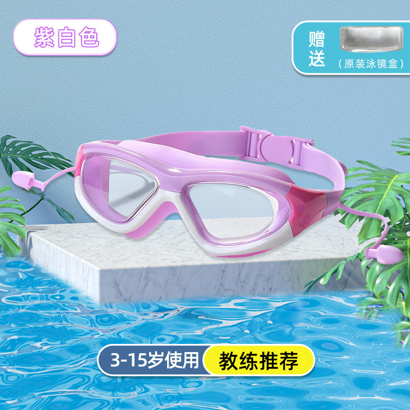 boxed purple-white-children's large frame swimming goggles