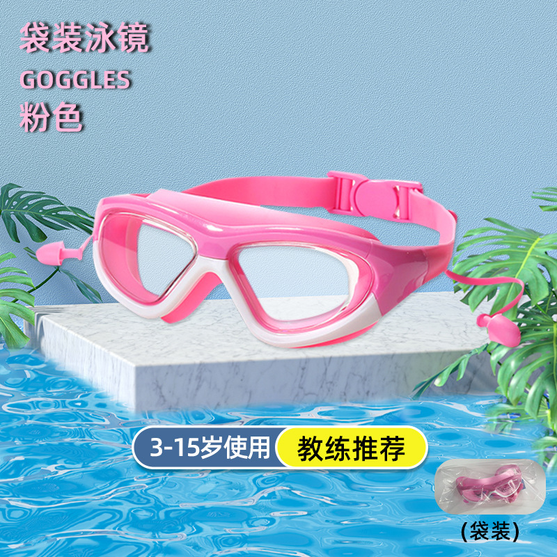 bagged pink white-children's large frame swimming goggles