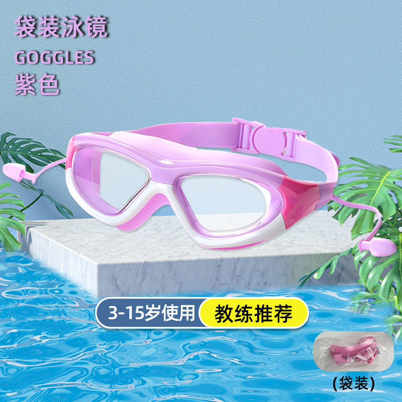 bagged purple-white-children's large frame swimming goggles