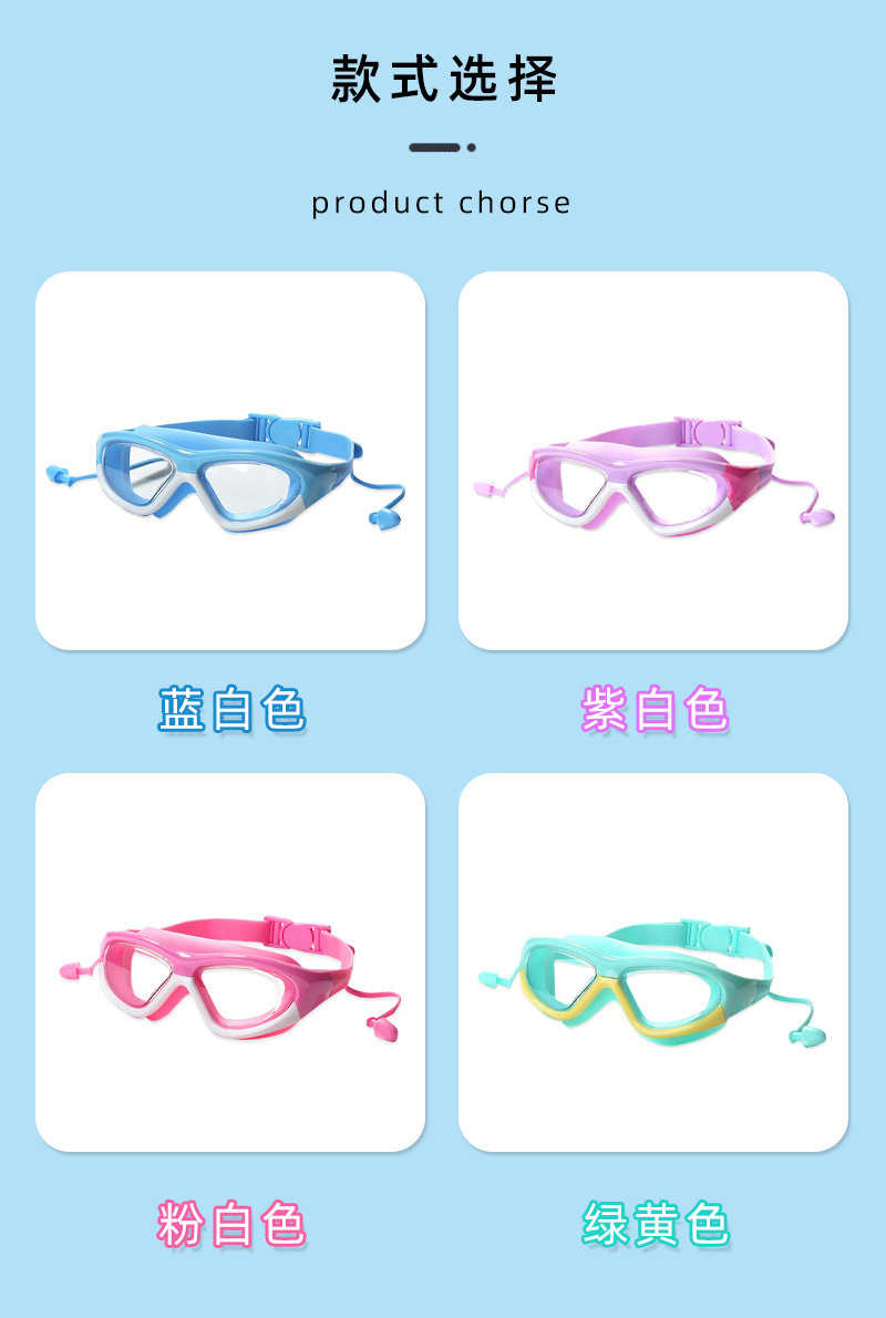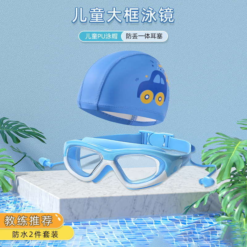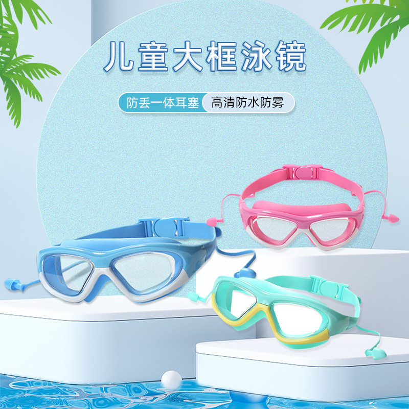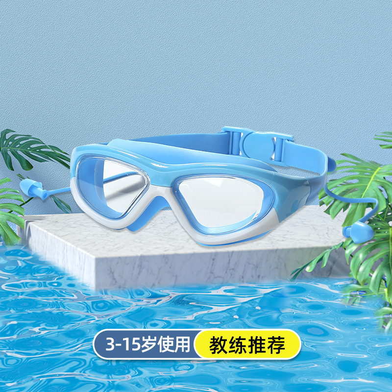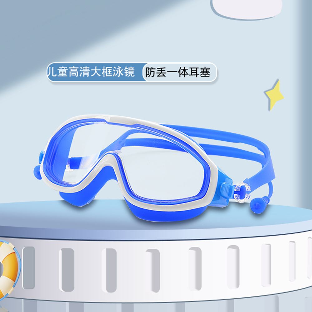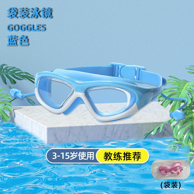 boxed blue-children's large frame swimming goggles