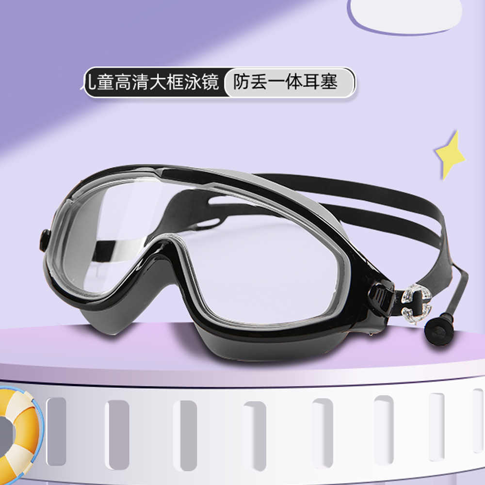 boxed black-children's large frame swimming goggles