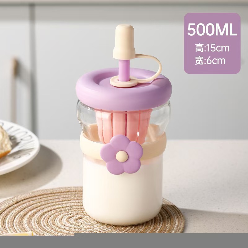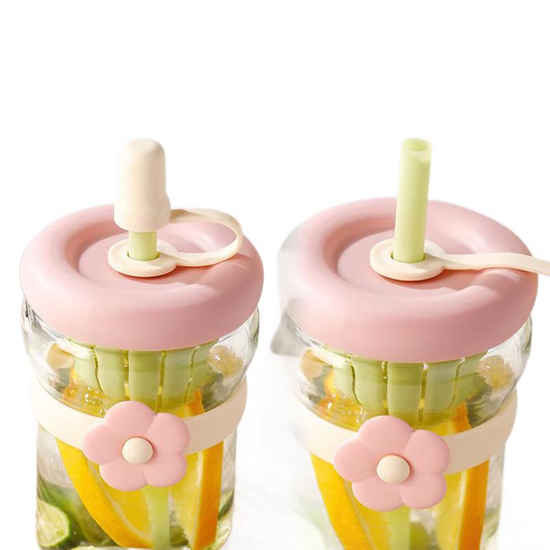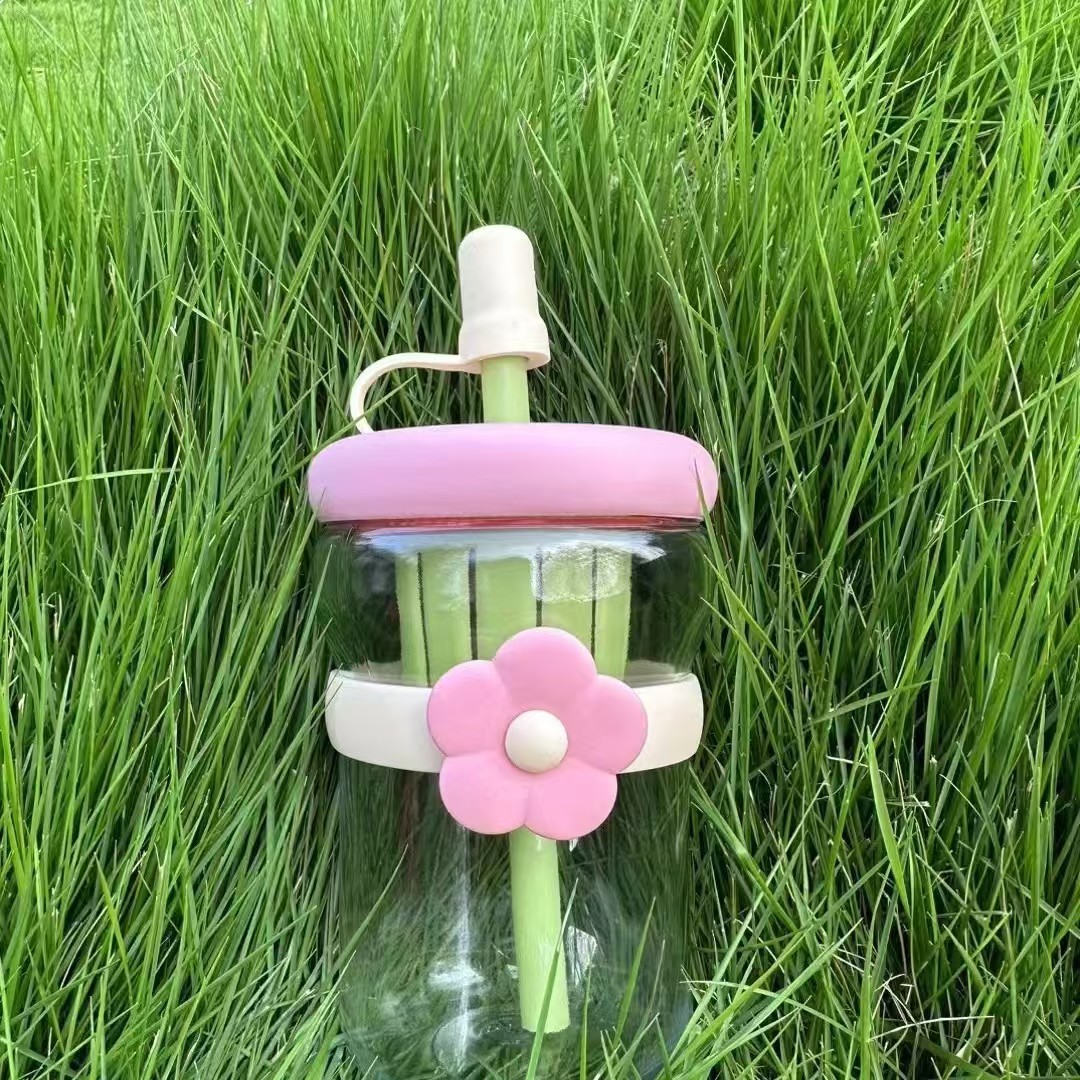 simple ins style thickened cup with straw portable double drink tumbler cute coffee cup tea and water separation tea cup