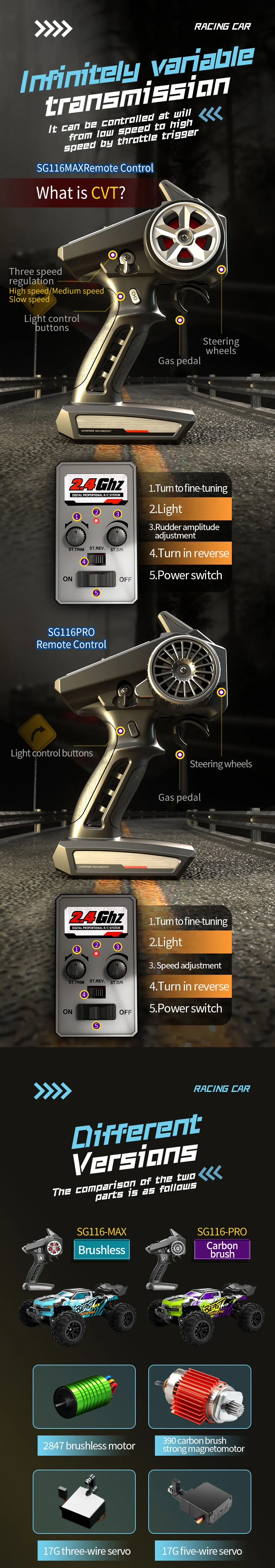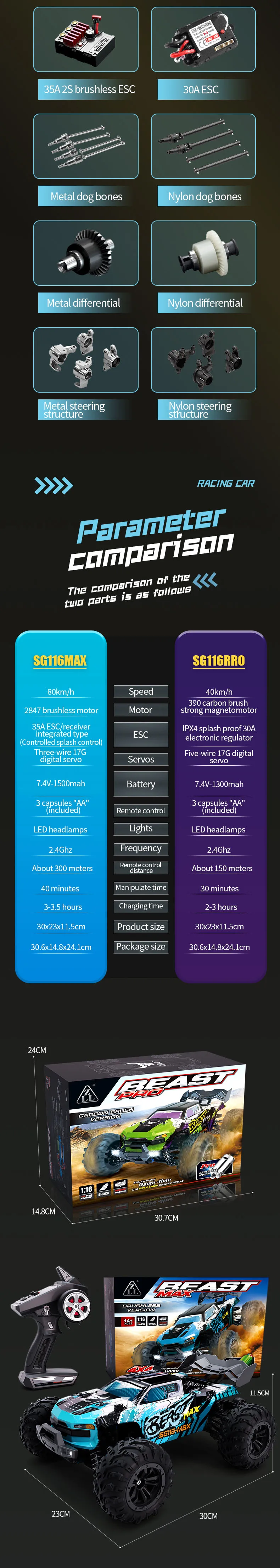About Product:ZLL SG116 MAX 1/16 Scale Brushless RC Car 2.4G 4WD High Speed Racing 80KM/H Metal Off-Road Vehicle LED Headlights Resin
