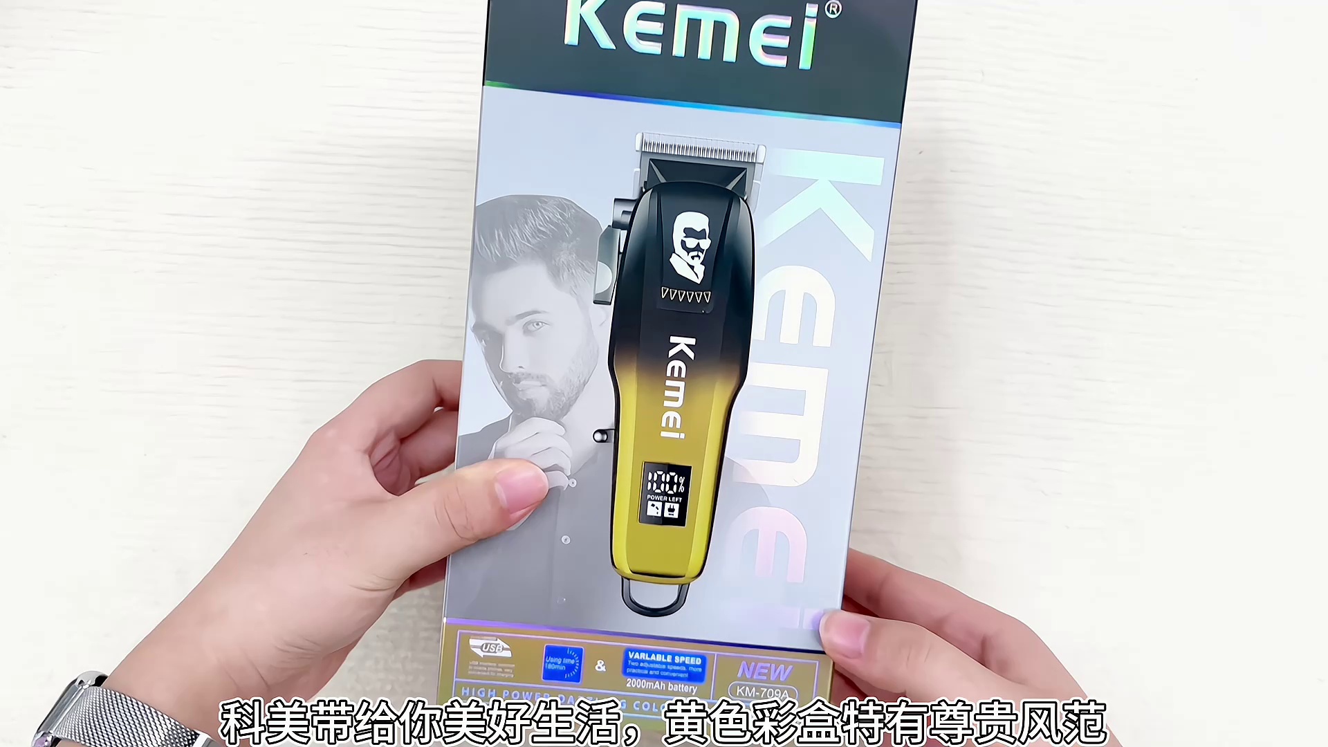 kemei km-709a usb charging two-color large capacity lithium battery cutter head adjustable hot selling product digital display electric clipper