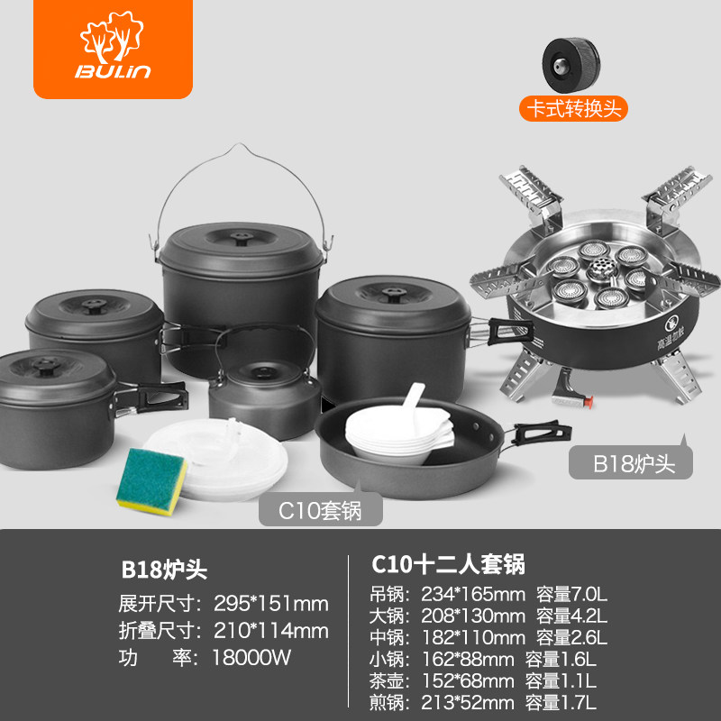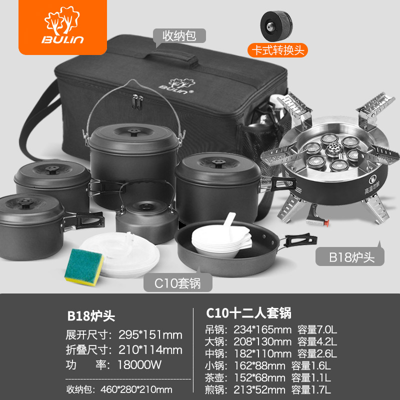 b18 seven-star stove + bulin c10 ten people pot set + storage bag + long gas converter
