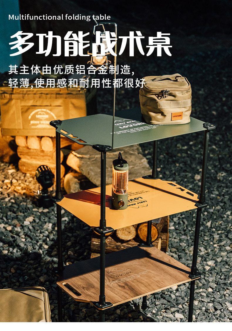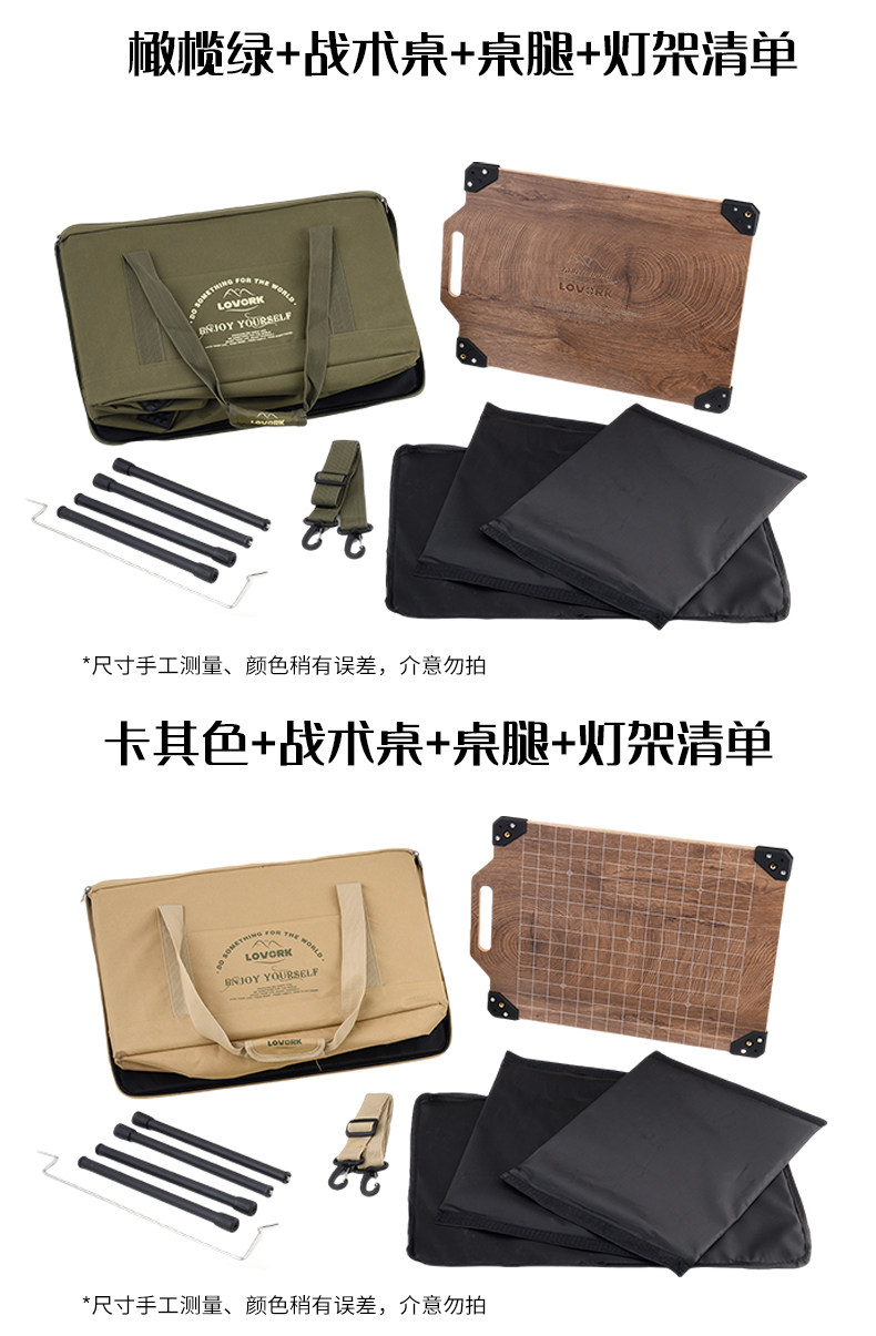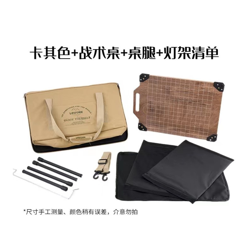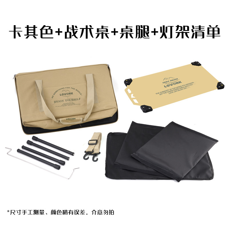 [khaki] storage bag + aluminum table board + table leg + lamp holder