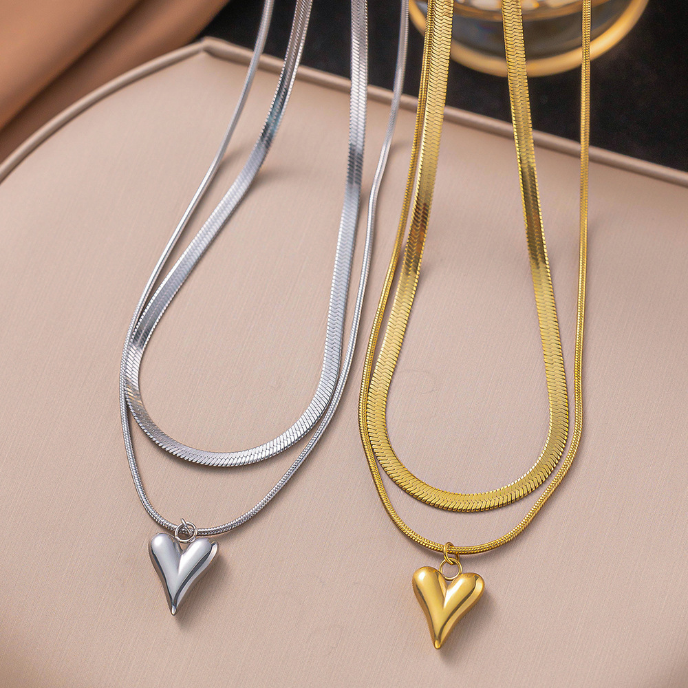 european and american peach heart stainless steel necklace female niche normcore bag titanium steel clavicle chain