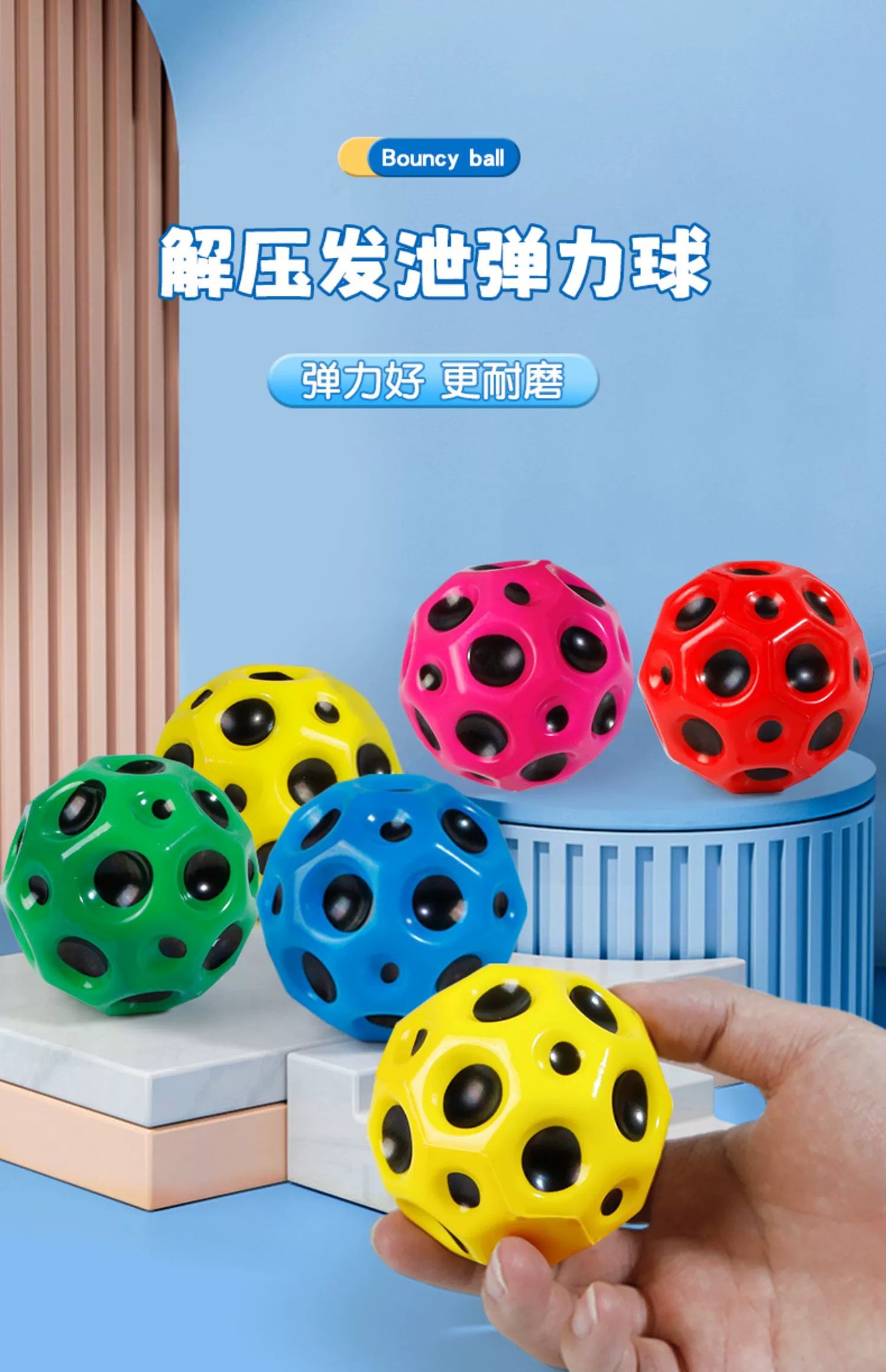 moon wrist ball-lake blue + flaming red + bright yellow