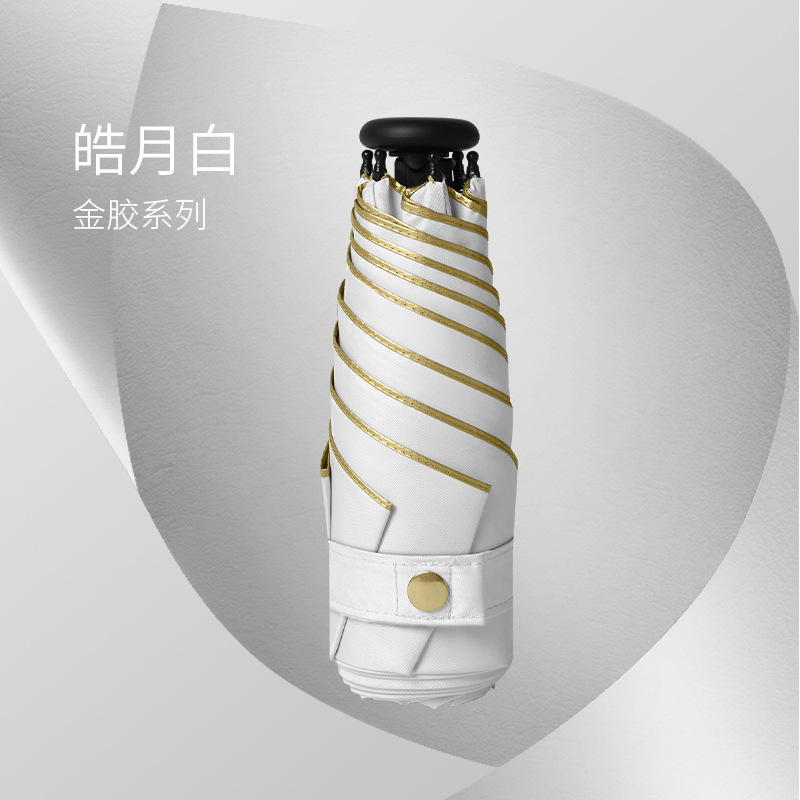 五折6骨拇指伞金胶面料米白色