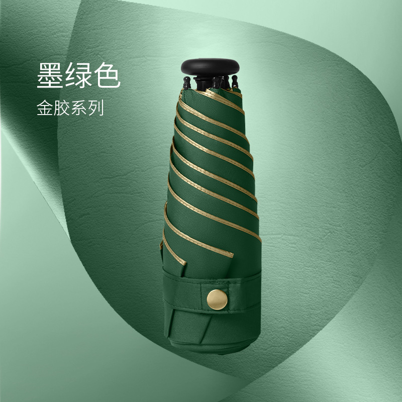 五折6骨拇指伞金胶面料墨绿色