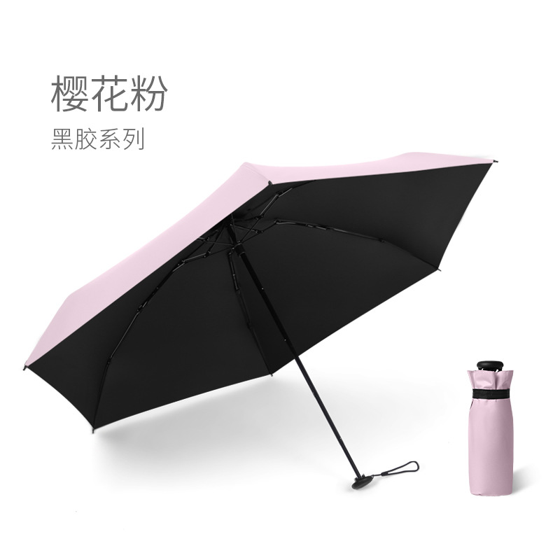 五折6骨拇指伞金胶面料粉色