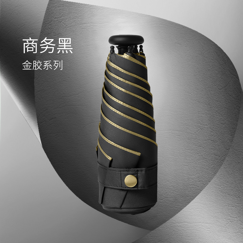 五折6骨拇指伞金胶面料黑色