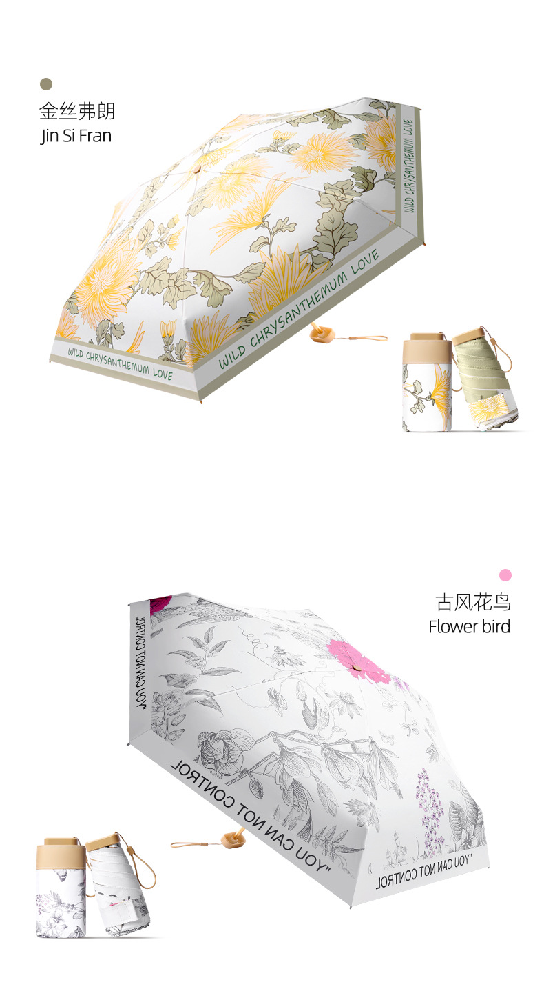 six fold yf small gold umbrella color plastic fabric-baihuaxuan
