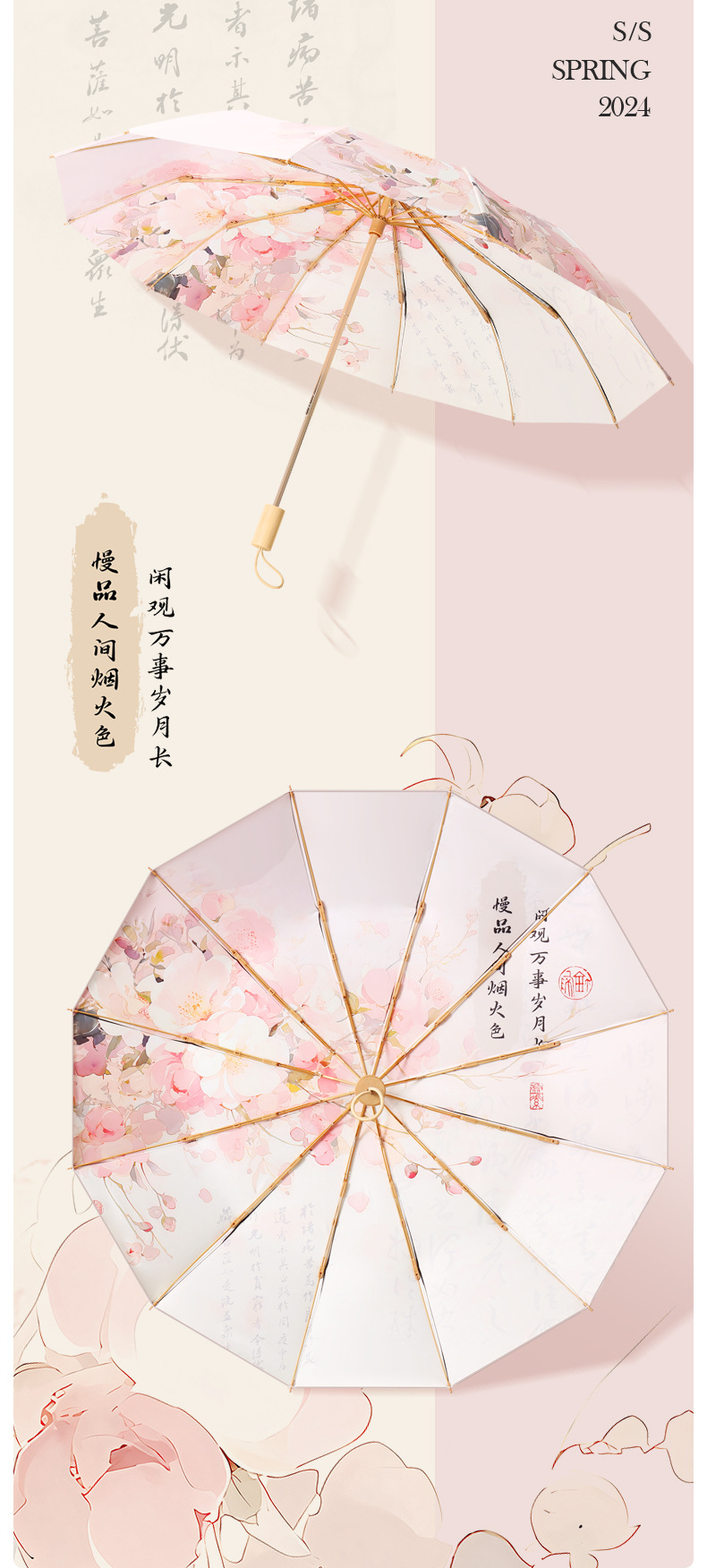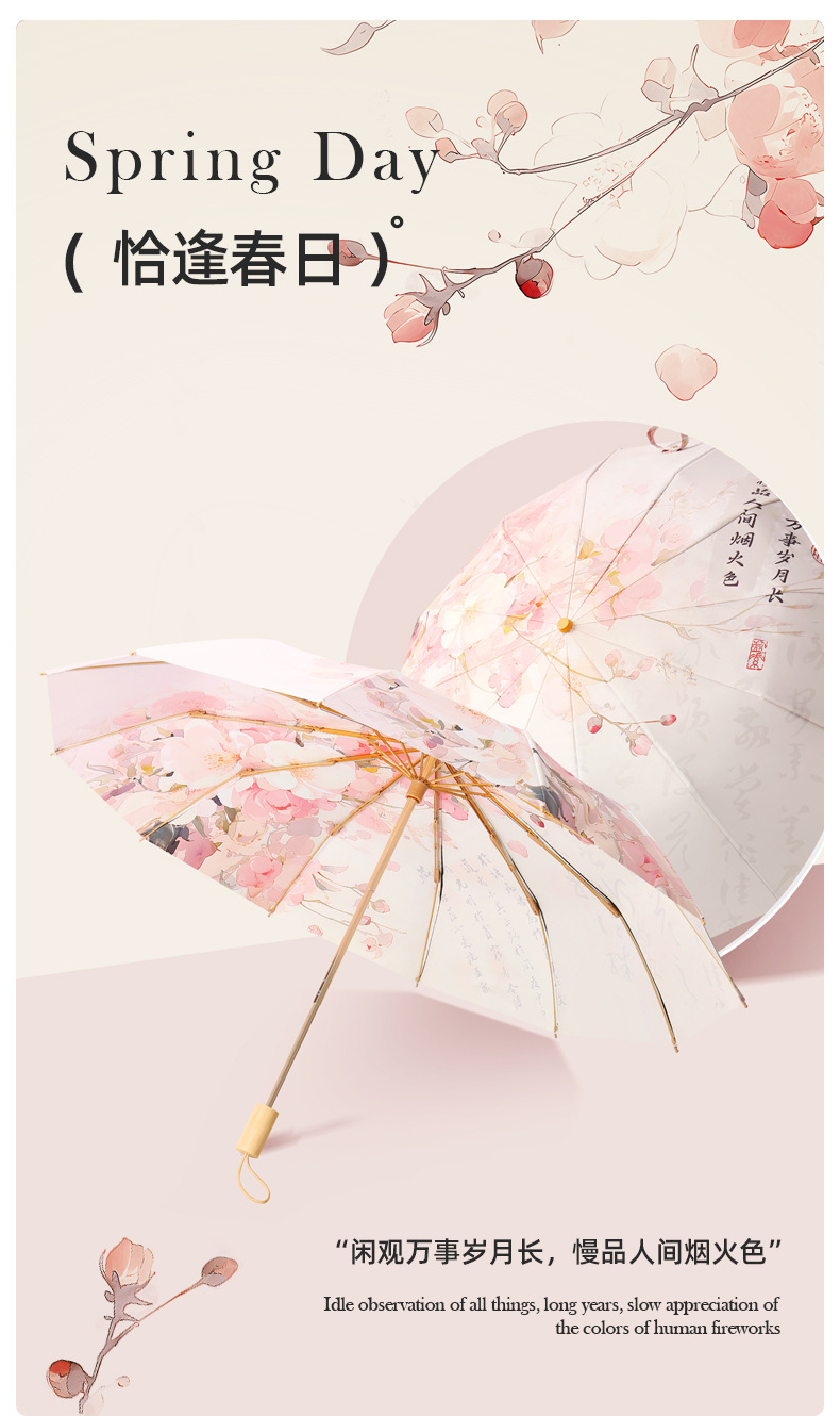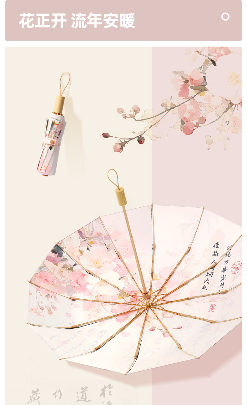 three fold hand open double layer 12 bone golden skeleton vinyl fabric yf gift bags -- pink yao chunye