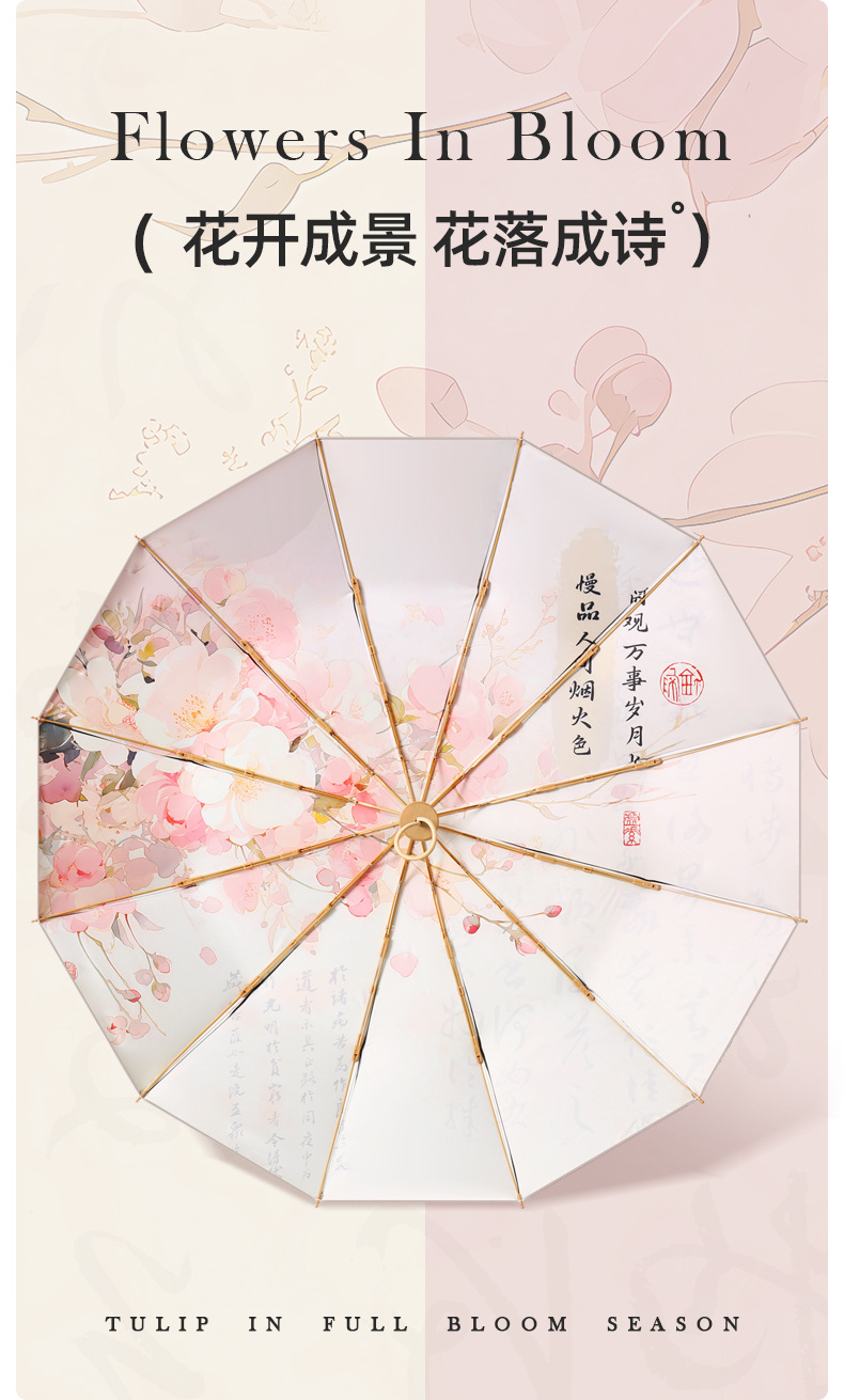 three fold hand open double layer 12 bone golden skeleton vinyl fabric yf gift bags -- full fragrance flower language