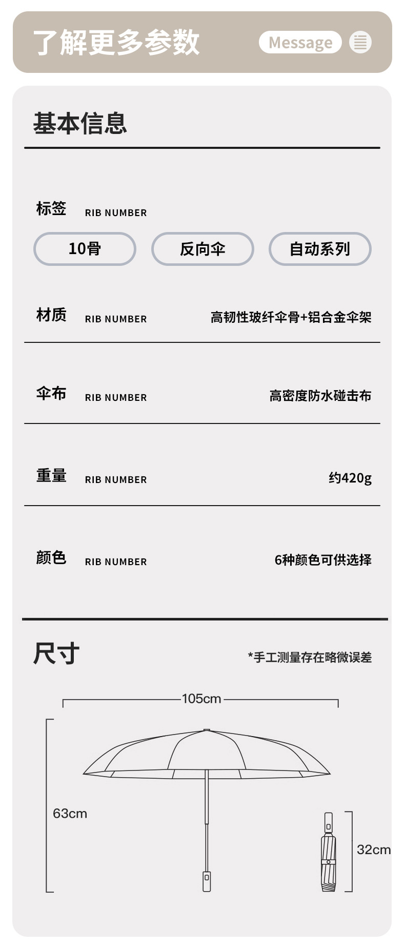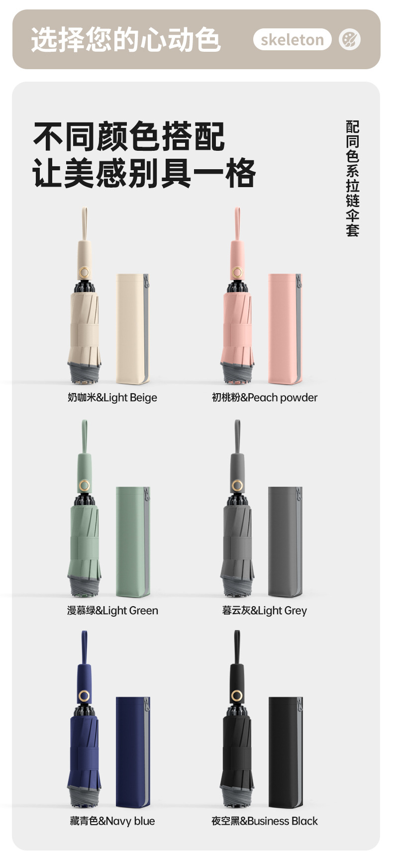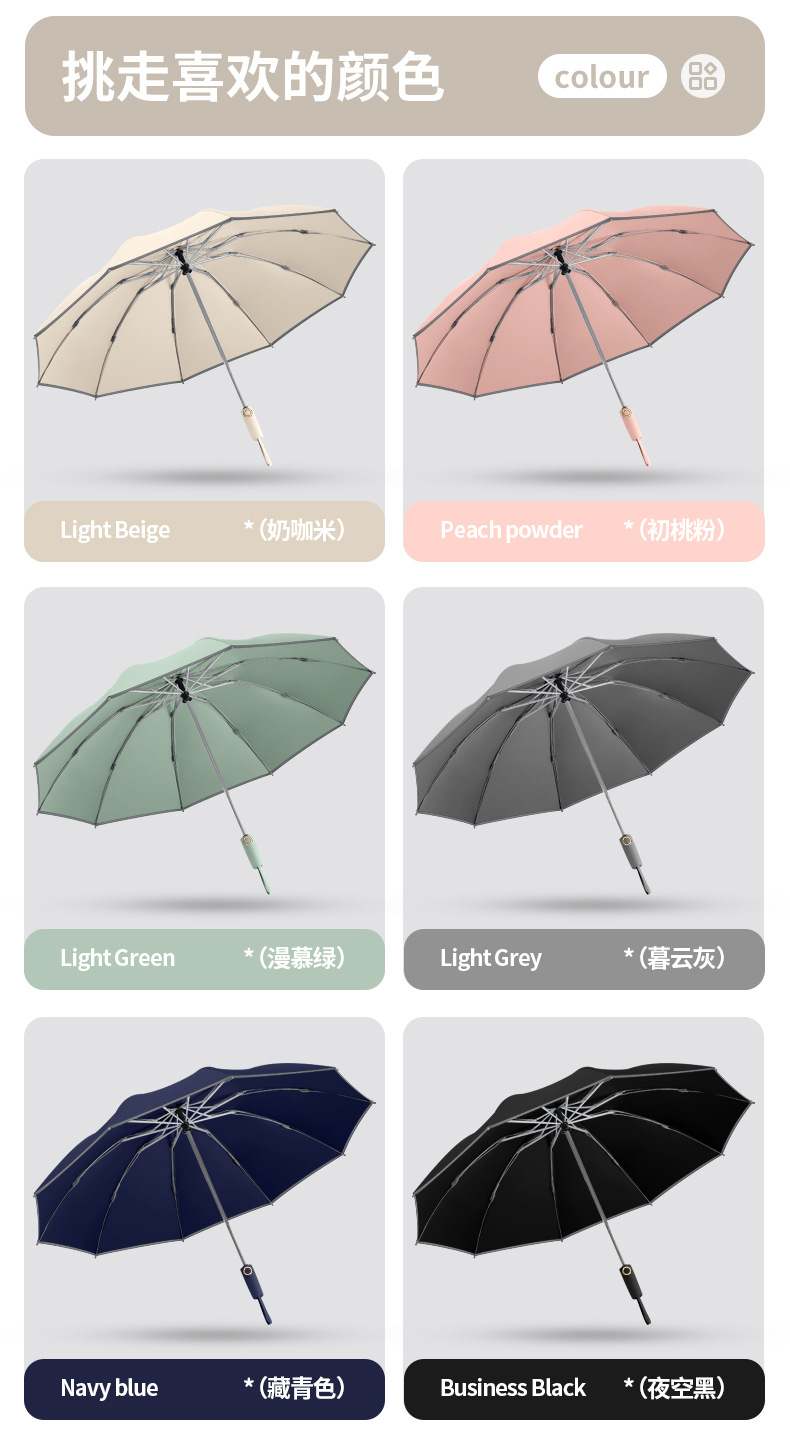 three fold automatic reverse umbrella xq-68 zipper bag 280t nc fabric fabric -- milk coffee m