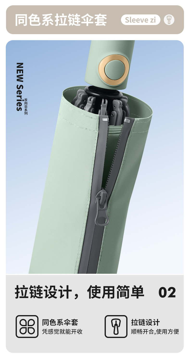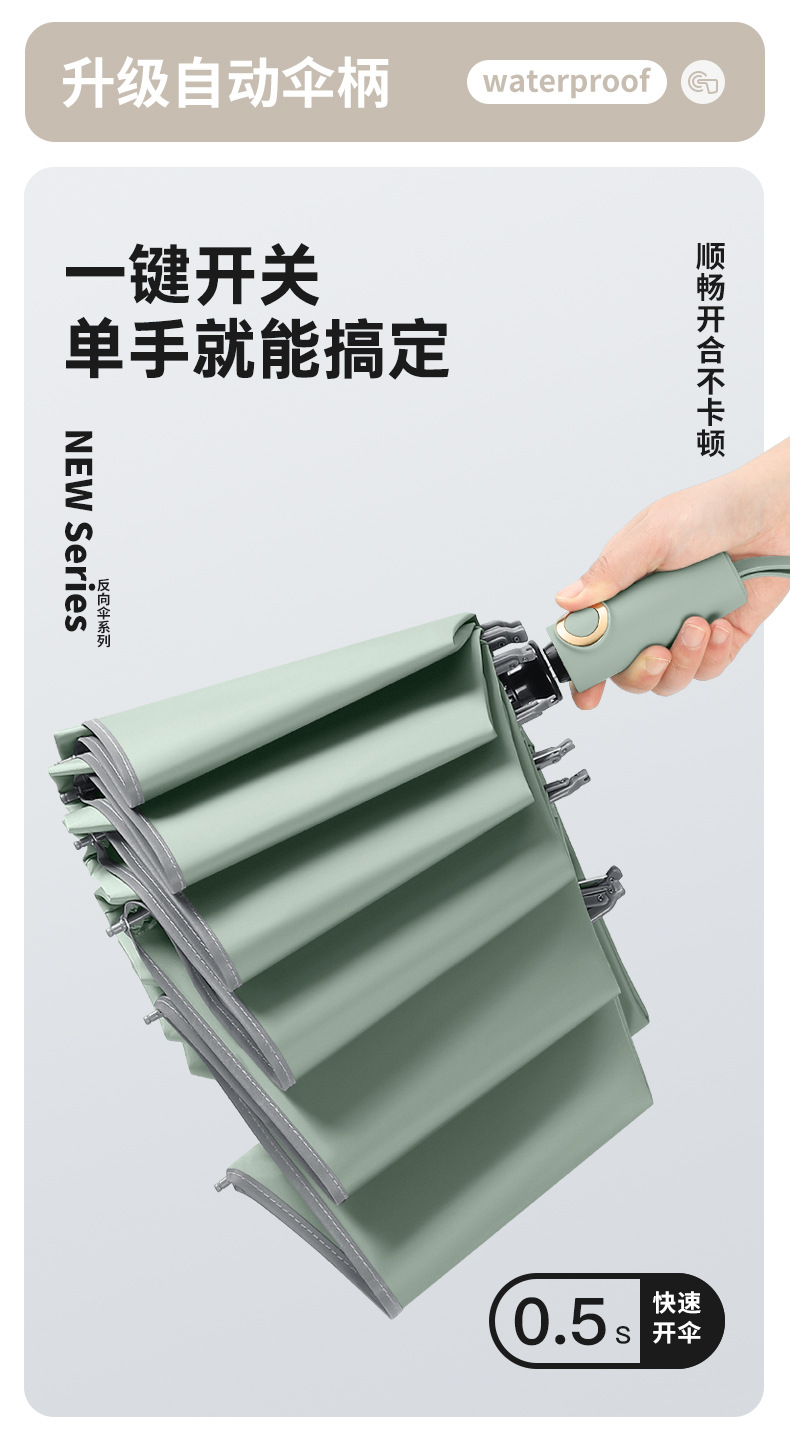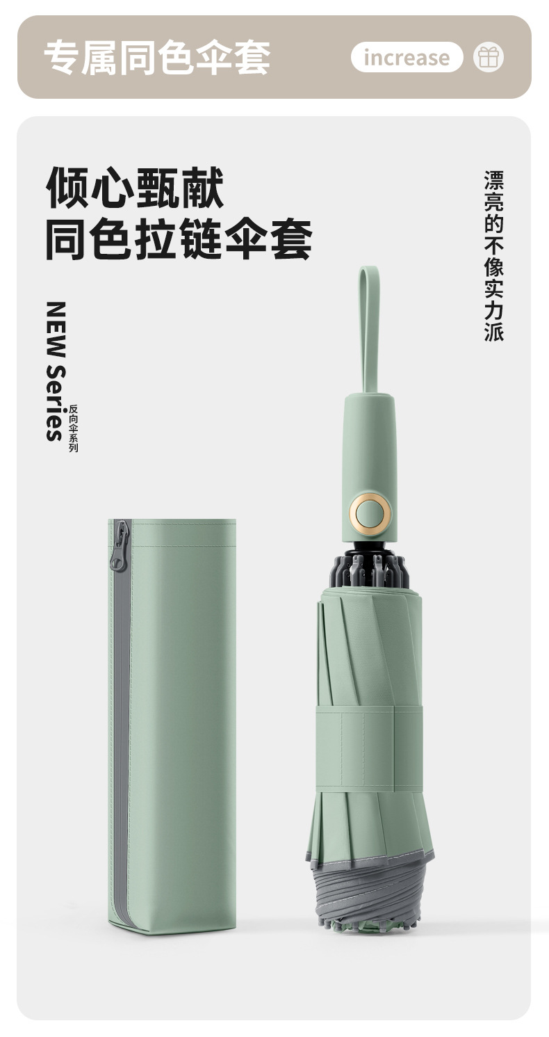 three fold automatic reverse umbrella xq-68 zipper bag 280t nc fabric fabric-manmu green