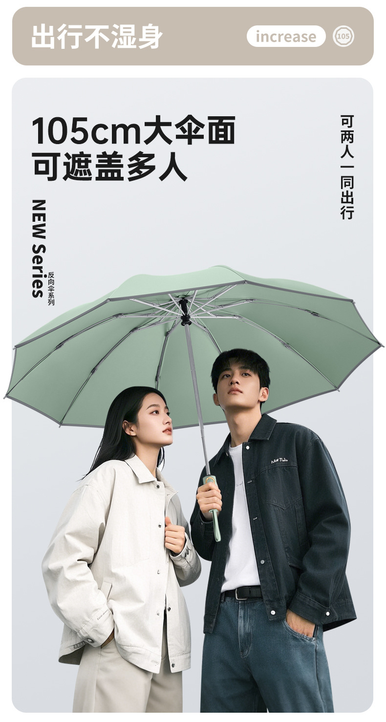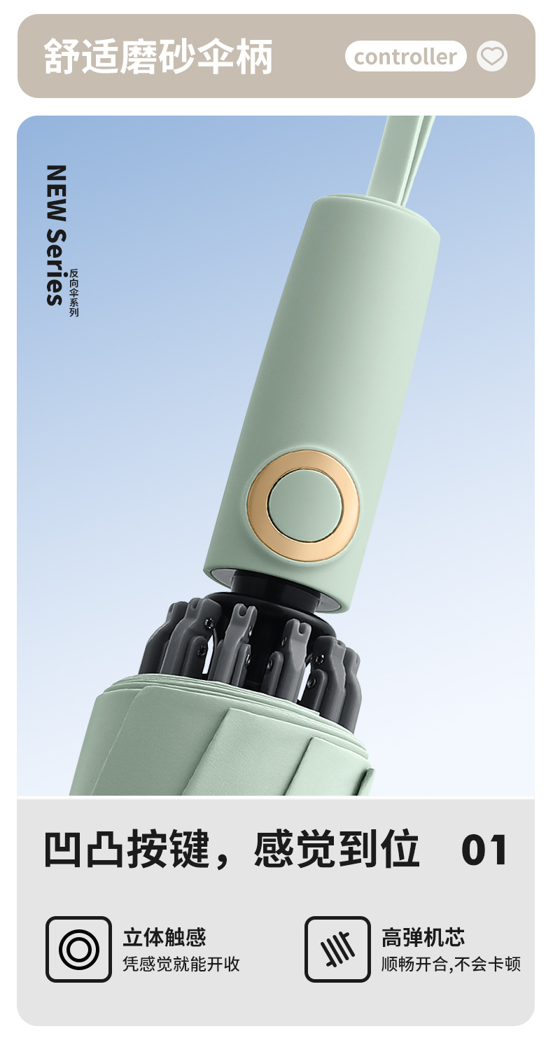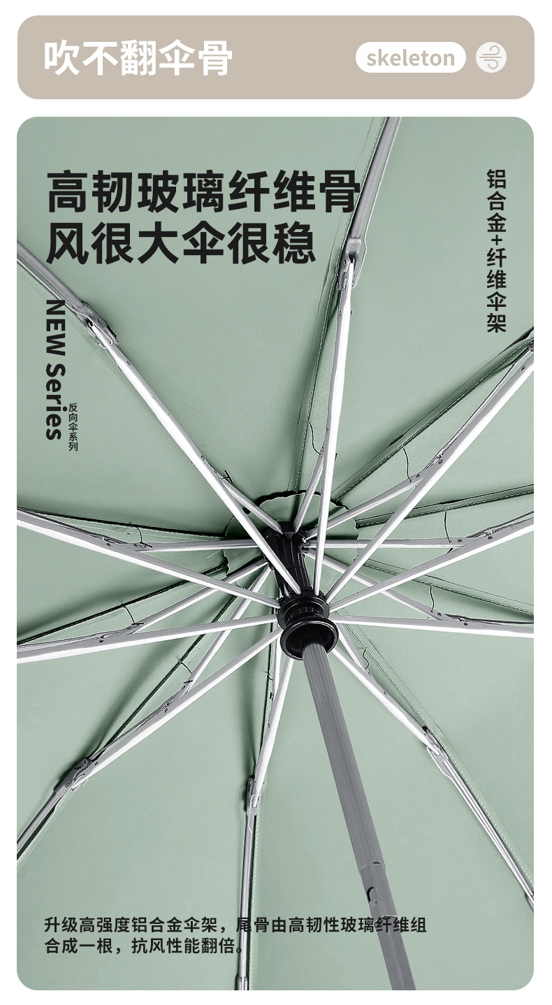 three fold automatic reverse umbrella xq-68 zipper bag 280t nc fabric fabric-manmu green