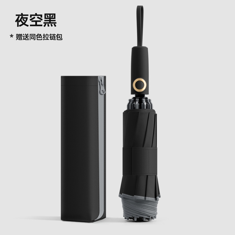 three fold automatic reverse umbrella xq-68 zipper bag 280t nc fabric fabric -- night sky black