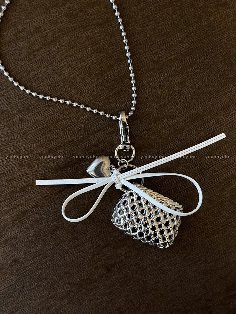 white leather rope hollow metal bag necklace