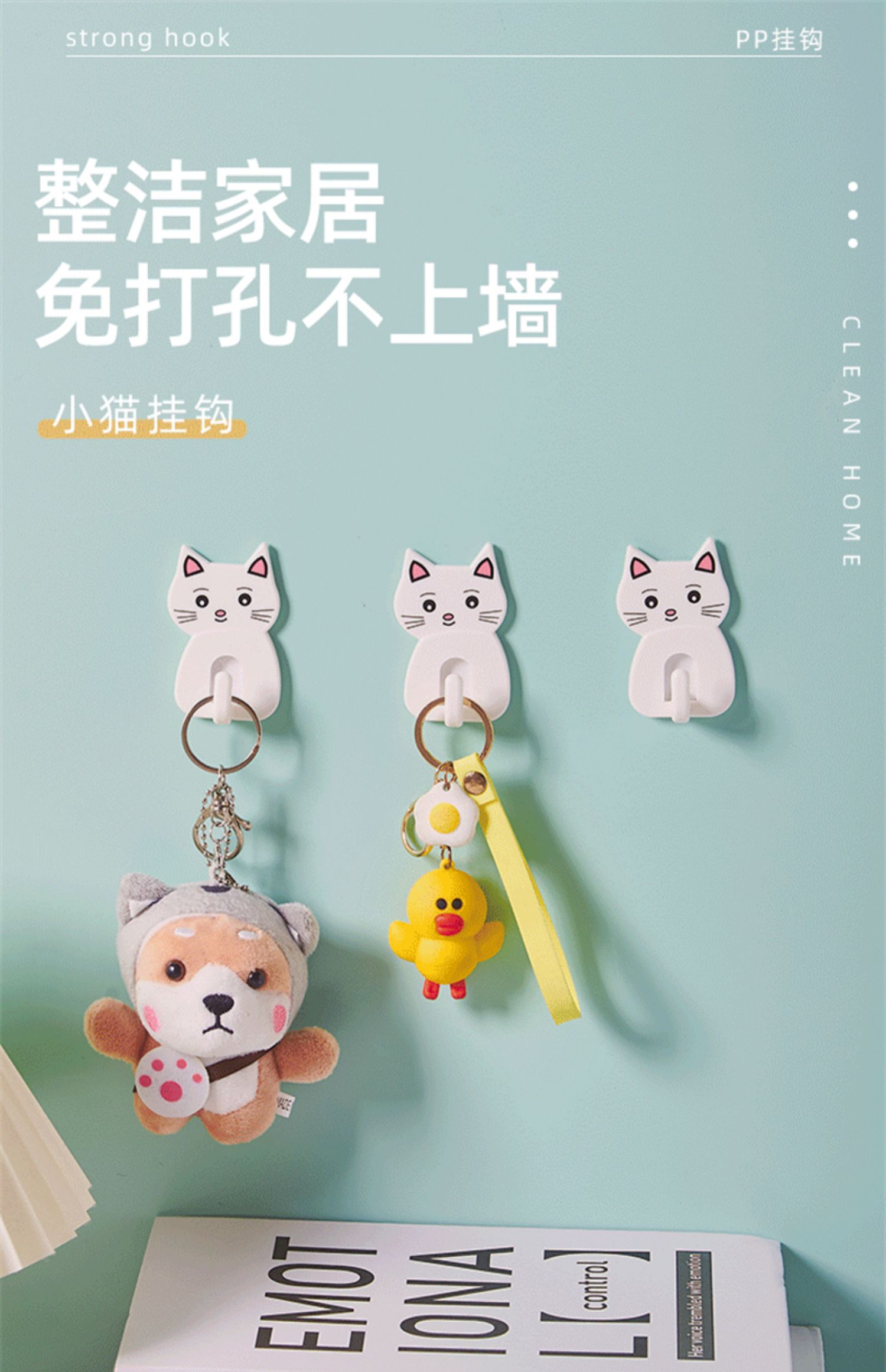 adhesive hook household kitchen behind the wall door key hook punch-free load-bearing cute sticky hook