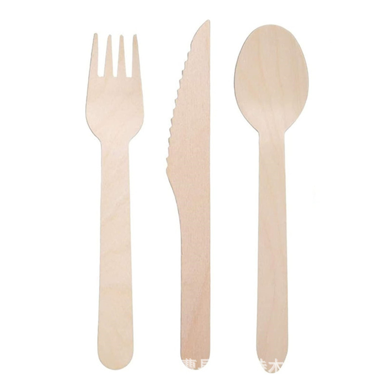 wooden knife, fork and spoon disposable fruit salad spoon western food steak knife cake dessert wooden fork solid wood knife, fork and spoon