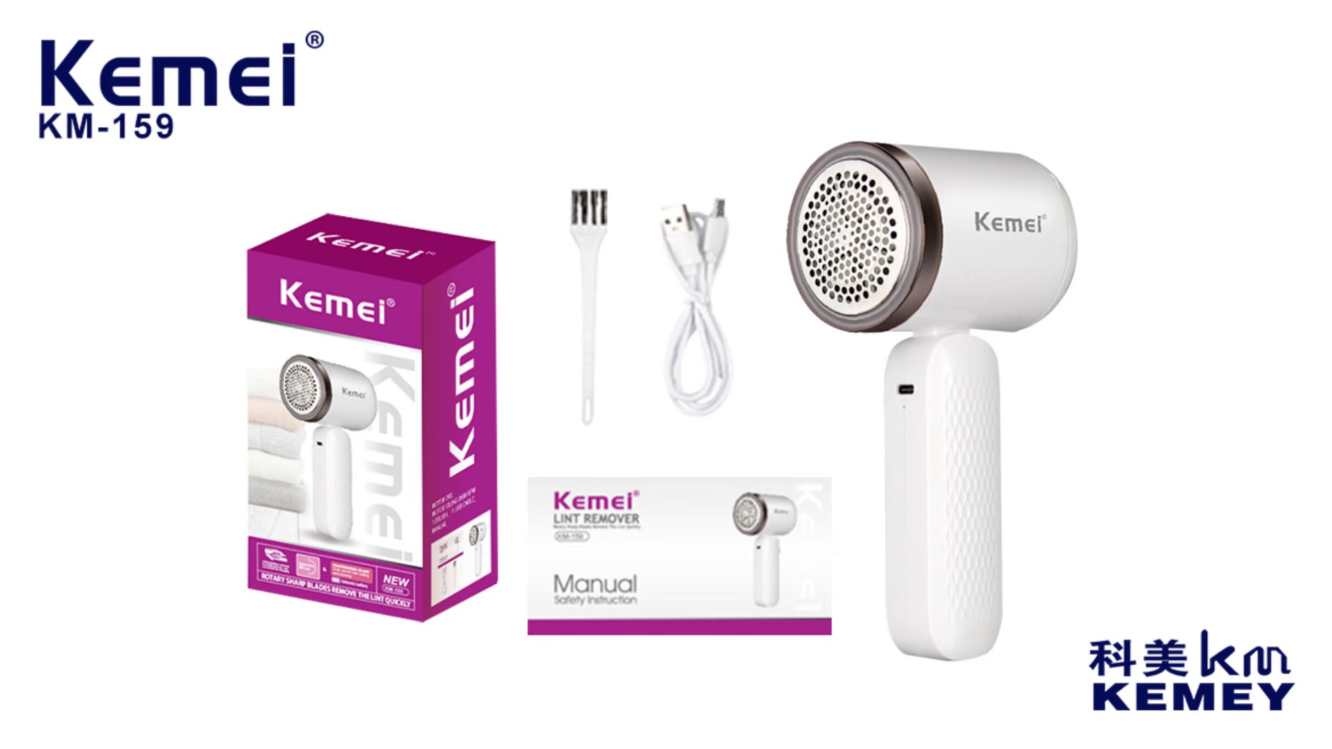 kemei km-159 usb charging large capacity chip storage box high speed clothing shaving machine