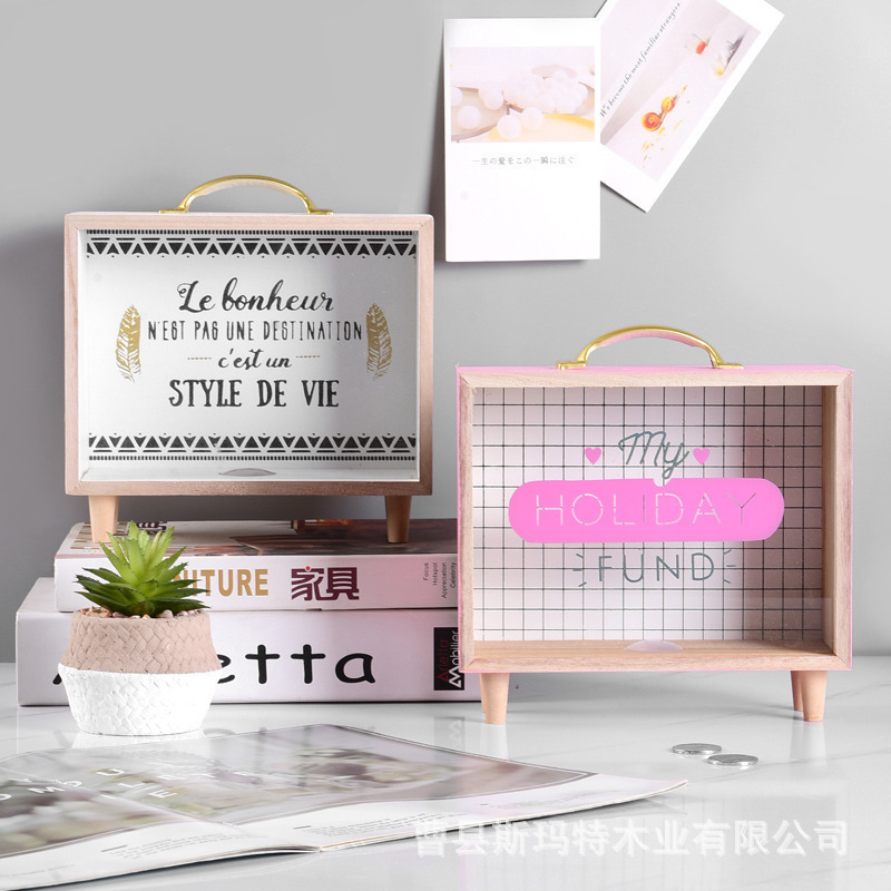 ins internet celebrity saving box large capacity wooden children money box change coin storage box table decorative ornaments