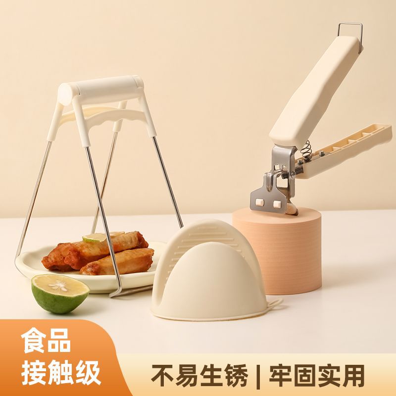 [simple cream white] anti-scald bowl clip-1 + dish-grabbing device-1 + handbag-1 pair