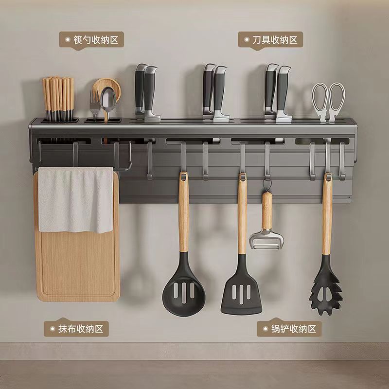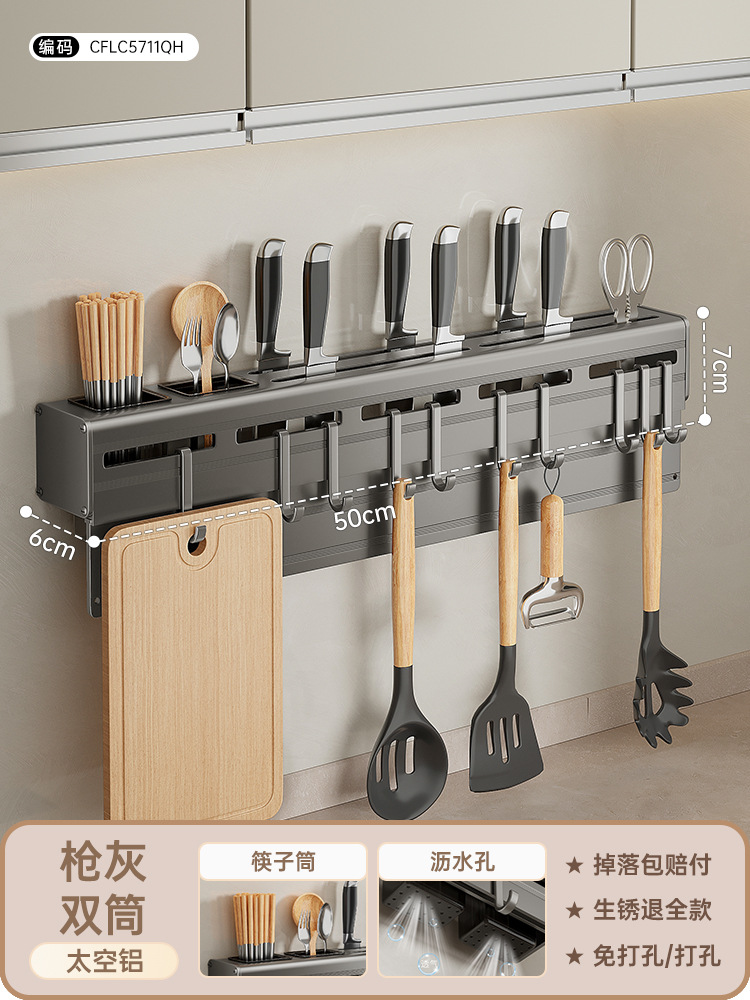 alumimum gun gray knife holder 50cm [block cutting board + rag rod + double barrel +10 hooks]]